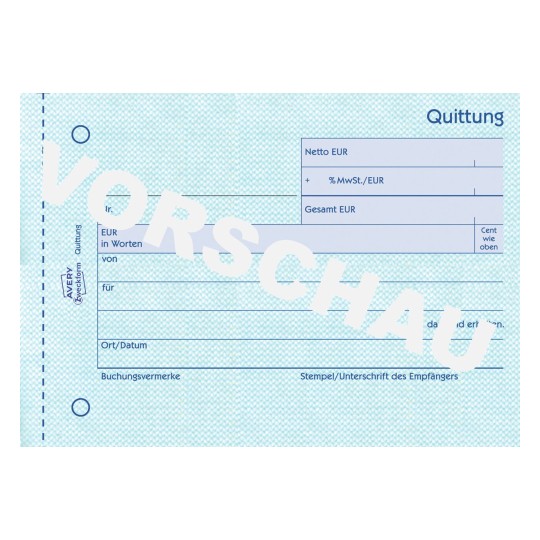 Für dein Business brauchst du professionelle Quittungen? Der AVERY Zweckform Block ist genau das Richtige! Mit separat ausgewiesener MwSt - perfekt für die Buchhaltung! Im praktischen A6 Format, Hardcover-Einband - super robust und langlebig! Jeder Block hat 2x50 Blatt - also 100 Quittungen! Der netzartige Hintergrunddruck macht's fälschungssicher - wichtig für seriöse Geschäfte! Ob für dein Ladengeschäft, Handwerksbetrieb oder kleines Business - damit bist du immer auf der sicheren Seite! Die Quittungen sind übersichtlich gestaltet, alles Wichtige ist drauf: Betrag, MwSt, Datum - kein langes Suchen mehr! Einfach ausfüllen, abtrennen und dem Kunden geben - professioneller geht's nicht! Seit Jahren der Klassiker für Quittungen - bewährt und zuverlässig! Einfach der beste Begleiter für deine Geschäfte - bestellen und nie wieder Stress mit Quittungen haben!