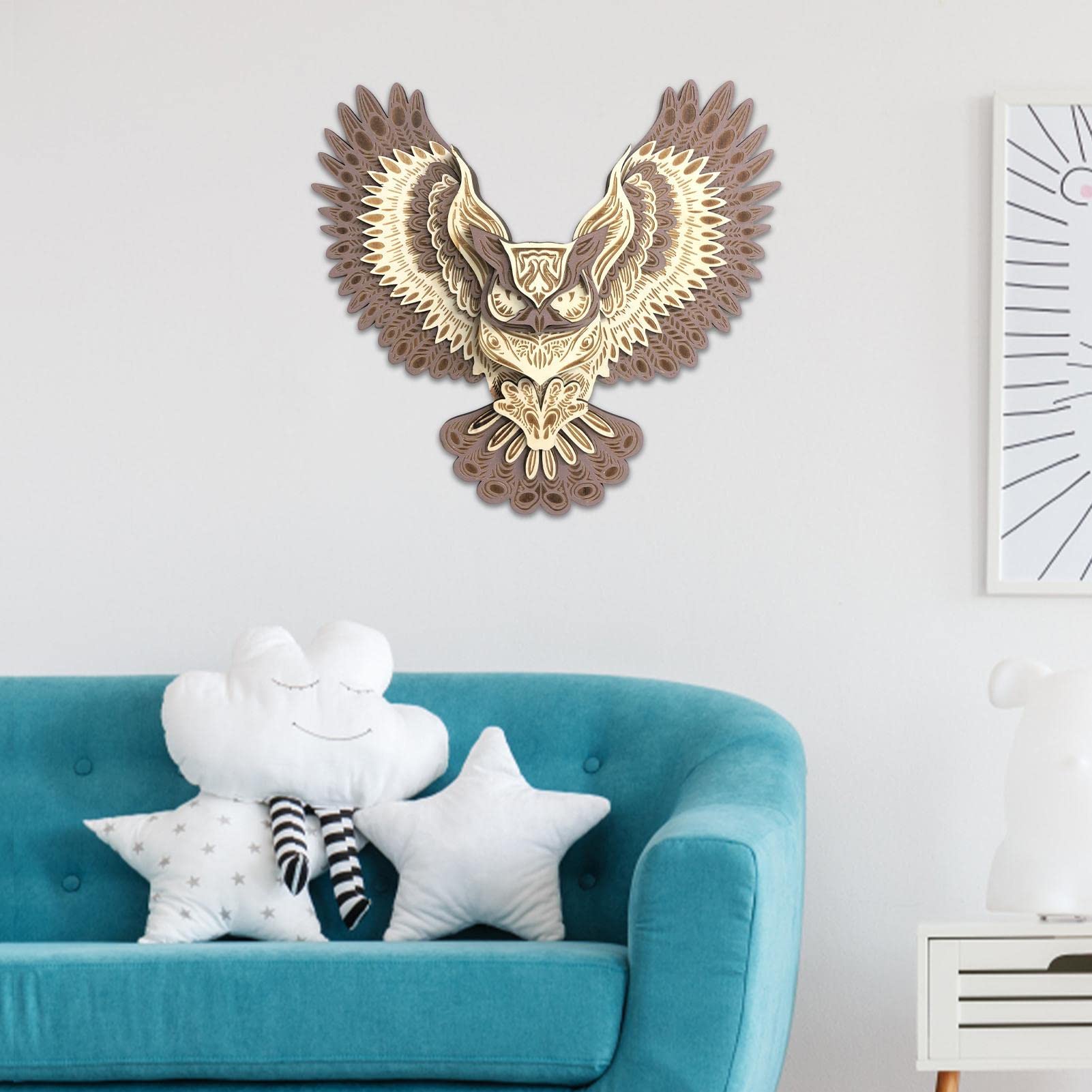 Die Eule hat ein wirklich naturgetreues Design mit allen Details, die eine Eule so besonders machen. Die helle Holzfarbe passt zu fast jedem Einrichtungsstil - ob modern, landhaus oder skandinavisch. Perfekt fürs Wohnzimmer, Schlafzimmer, Kinderzimmer oder sogar im Büro.
