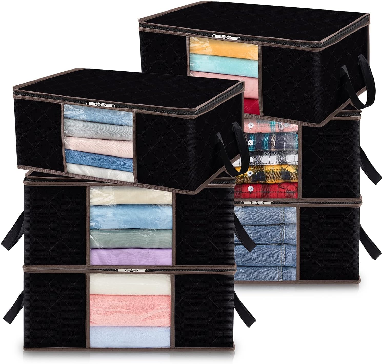 Platzprobleme? Diese JEMSKAL Aufbewahrungstaschen sind die Lösung! 3 Stück à 66 Liter - perfekt für Decken, Kleidung, Kissen oder Spielzeug. Mit stabilen Metallrahmen und transparenten Fenstern. Maße: 50x40x33cm. Aus atmungsaktivem Vliesstoff, wasserdicht und geruchsneutral. Einfach aufklappen, befüllen und platzsparend verstauen. Unter dem Bett, im Schrank oder Keller - überall einsetzbar. Faltbar für platzsparende Lagerung. Endlich Ordnung im Haushalt!