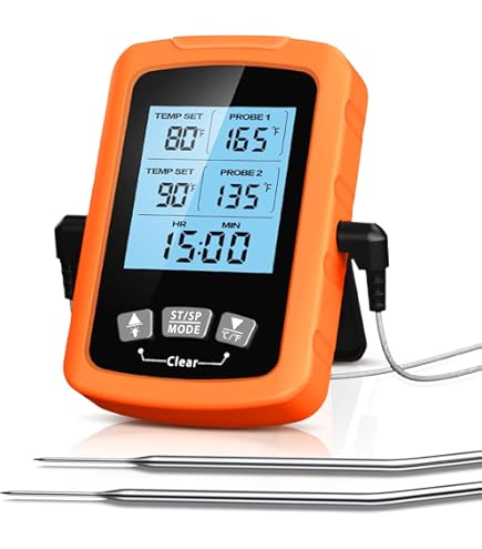 Grill-Profi werden war noch nie so einfach! Dieses digitale Thermometer mit 2 Fühlern misst Temperaturen von -20°C bis 300°C. Ein Fühler fürs Fleisch, einer für die Ofentemperatur. Großes LCD-Display mit Hintergrundbeleuchtung - auch nachts gut ablesbar. Kabellos mit 30-50m Reichweite. Timer mit Alarmfunktion warnt bei erreichter Temperatur oder Zeit. Perfekt für Grillen, BBQ, Backofen oder Camping. Batteriebetrieben (4x AAA, nicht enthalten). Mach dein Fleisch immer perfekt gar!