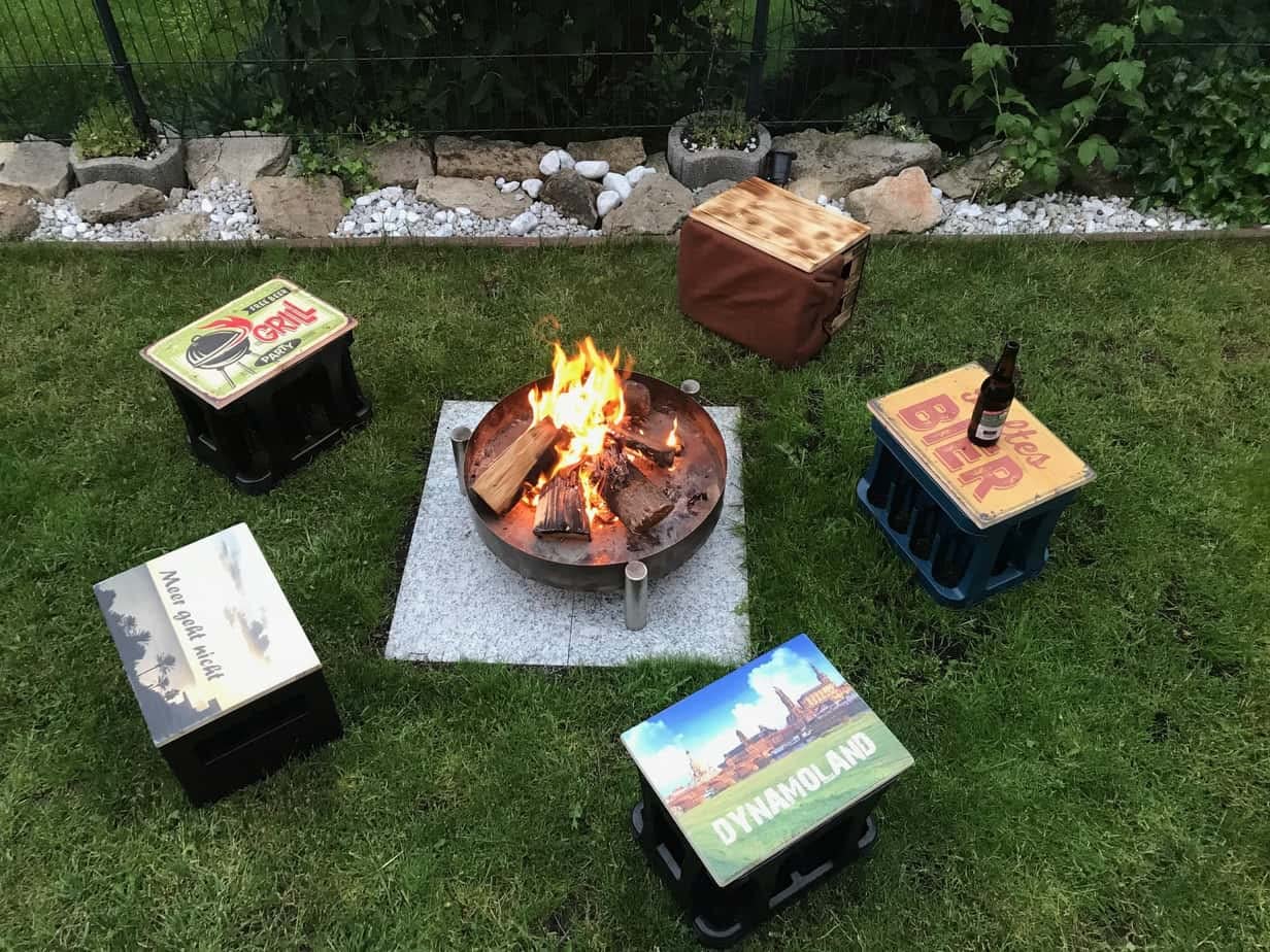 Der ultimative Bierkastensitz für Fußball-Fans! Aus Fichten-Leimholz, 40x30x1,9 cm, lackiert. Passt auf alle Euro-Bierkisten und viele andere Kisten. Wetterfest lackiert - aber nicht dauerhaft draußen lassen. Das Besondere: Integriertes 'Bierkicker' Fußball-Spiel! Inklusive Spielfiguren aus Kronkorken (4 schwarze Torpfosten, je 1 gelb/rot für Torwart/Spieler). Perfekt für EM-Partys, Grillabende oder Gartenfeste. Spart Stühle und bringt Spaß! Made in Germany - Qualität die man sieht. Achtung: Bierkasten nicht im Lieferumfang! Einfach genial für gesellige Runden.