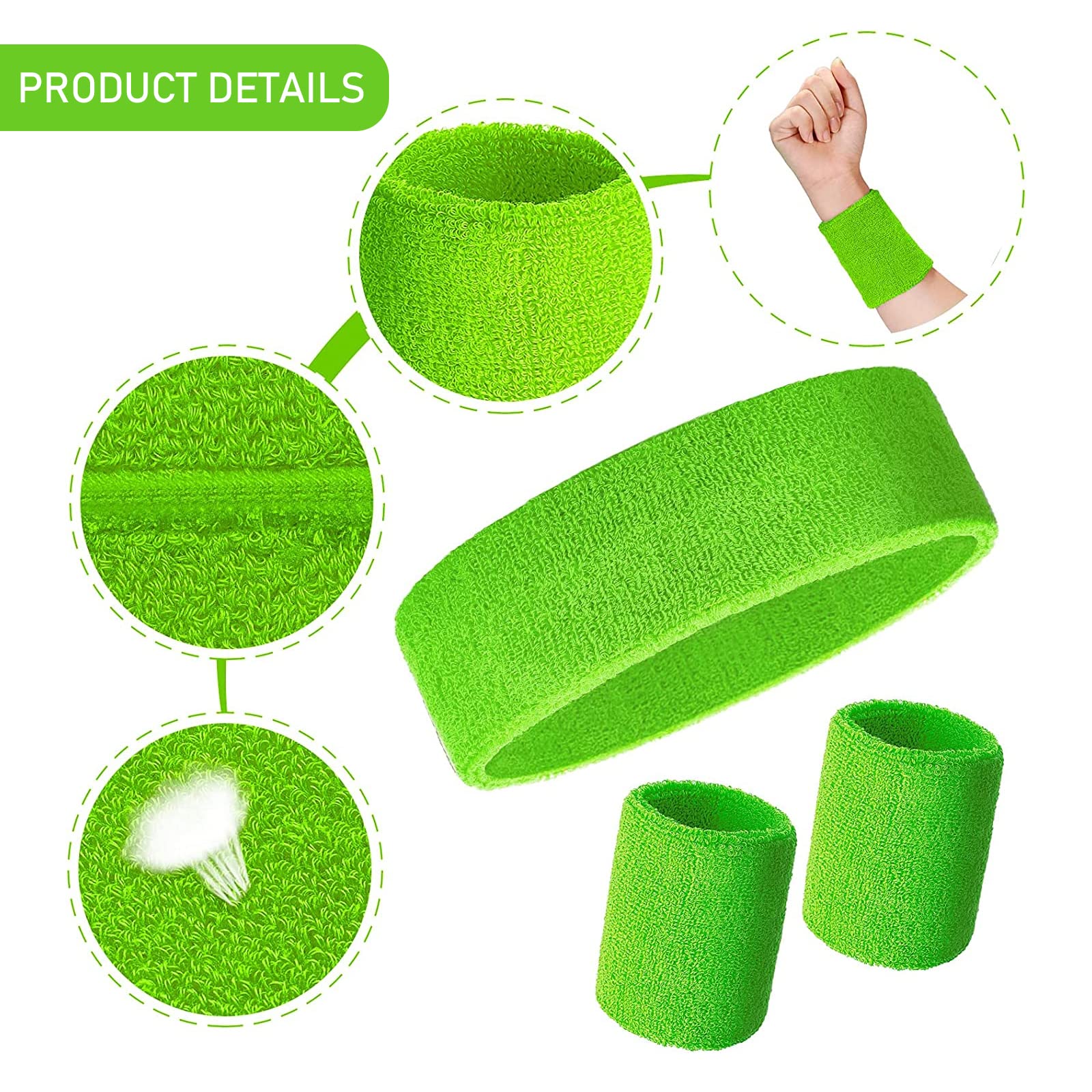 Dieses 9-teilige Schweißband-Set in knalligen Neonfarben ist perfekt für jeden Sportbegeisterten! Im Set enthalten sind 3 komplette Sets in Orange, Fruchtgrün und Rosenrot - jedes Set besteht aus 1 Stirnband und 2 Armbändern. Aus weichem, atmungsaktivem Material das super auf der Haut liegt und angenehm zu tragen ist. Die gute Elastizität sorgt für perfekten Sitz ohne zu rutschen - egal ob beim Laufen, Fitness oder Ballsport. Die Schweißabsorptions-Funktion ist top: Sie saugen den Schweiß von Stirn und Handgelenken zuverlässig auf und halten dich trocken. Das Stirnband hält zusätzlich die Haare aus dem Gesicht, die Armbänder sind praktisch zum Schweiß abwischen und schützen die Handgelenke. Perfekt fürs Fitnessstudio, Laufen, Basketball, Tennis oder andere Sportarten. Mit den leuchtenden Neonfarben machst du nicht nur funktionell alles richtig, sondern siehst auch noch stylisch aus! Einfach anziehen und durchstarten - damit bleibst du auch bei intensivem Training trocken und konzentriert.