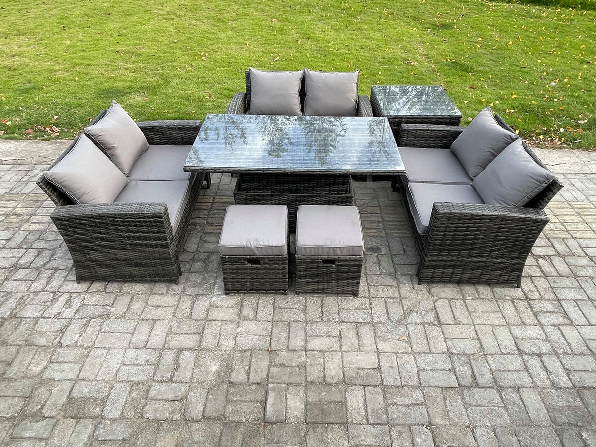 Wow, was für ein traumhaftes Garten-Set! Dieses 8-teilige Loungeset von A ALFRESCOLOU bringt Urlaubsfeeling in deinen Garten. Enthalten: 2 Zweisitzer-Sofas, 4 Einzelstühle und 2 Tische. Der stabile Rahmen aus verzinktem Stahl rostet nicht, die Tischplatten und Armlehnen aus Akazienholz sind absolut witterungsbeständig. Maße: Doppelsofa 117x67x78cm, Einzelsofa 63x67x77cm, Tisch 100x50x40cm. Tragkraft: 150kg pro Sitz, Tisch 60kg. Mit verstellbaren Füßen für unebene Böden. Perfekt für gemütliche Abende mit Freunden oder Familienfeiern im Freien!