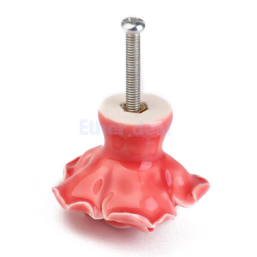 FBSHOP Keramik Möbelknäufe 10er Set - Chrysanthemen Design Rosa