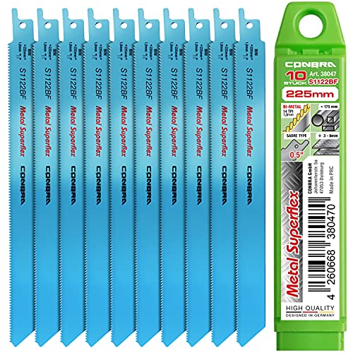 Hey, wenn du regelmäßig mit Metall arbeitest, sind diese Säbelsägeblätter von FALKENWALD genau das Richtige! Im 10er-Set mit 225mm Länge und 14 TPI - perfekt für saubere Schnitte in Metall, Edelstahl, Aluminium und Bleche. Aus flexiblem Bi-Metall gefertigt, was die Lebensdauer enorm verlängert - auch bei harten Einsätzen! Mit 1/2 Zoll Universalschaft passen sie für so gut wie alle gängigen Säbelsägen: Bosch, Makita, Einhell, Milwaukee, DeWalt und viele mehr. Die werkzeuglose Befestigung spart Zeit und Nerven! Mit 1,0mm Blattstärke und robuster Geometrie verziehen sie sich nicht - auch bei Vibrationen nicht! Ideal für Rohre, Profile, Sandwichpaneele und schwer zugängliche Stellen. Und das Beste: 60 Tage Geld-zurück-Garantie! Wenn du nicht zufrieden bist, kriegst du dein Geld zurück - ohne Wenn und Aber! Einfach ein Qualitätsprodukt für alle Heimwerker und Profis, die Wert auf Langlebigkeit und Präzision legen!