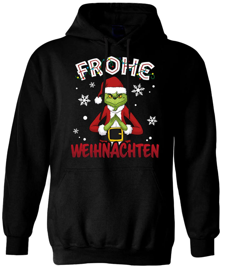 Der perfekte Pullover für Weihnachtsmuffel und Grinch-Fans! Dieser übergroße Kapuzenpullover mit dem grimmigen Grinch Motiv bringt garantiert Lacher auf deine Weihnachtsfeier! Super bequem im Oversize-Schnitt - wie eine kuschelige Umarmung! Mit praktischer Kapuze und Taschen - stylisch und praktisch! Das Grinch-Motiv auf dem Rücken ist ein echter Hingucker - ideal für Weihnachtsfeiern, Familienfeste oder einfach nur für gemütliche Tage auf dem Sofa. Aus weichem, flauschigem Material - perfekt für kalte Wintertage. Einfach mit Leggings oder Jeans kombinieren - der lässige Look garantiert! Ob du den Grinch liebst oder einfach nur einen lustigen Weihnachtspullover suchst - hier wirst du fündig! Mach die Weihnachtszeit noch fröhlicher - mit diesem coolen Pullover zeigst du, dass Weihnachten auch mit Humor geht! Einfach anziehen und die Weihnachtsstimmung genießen - Grinch-style!