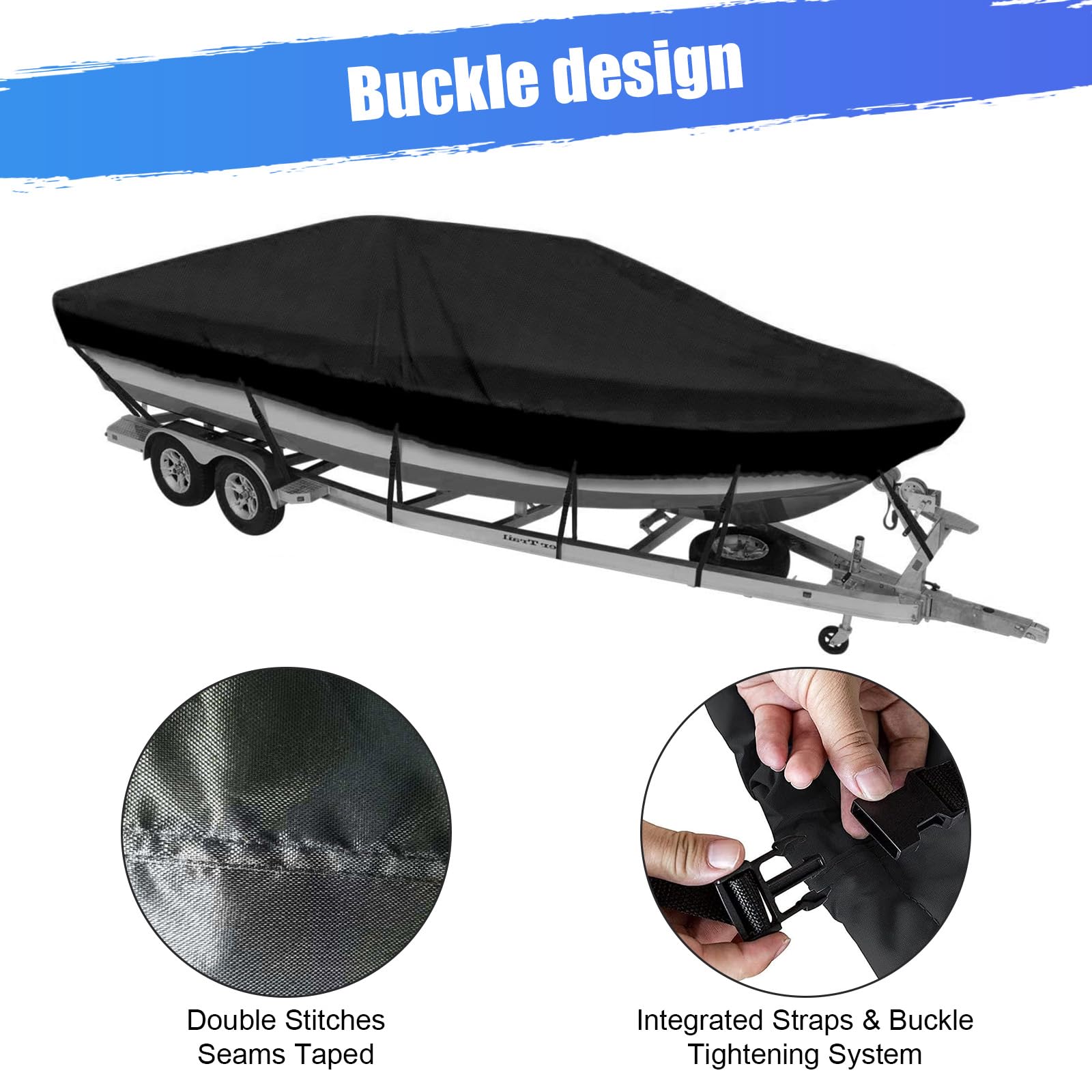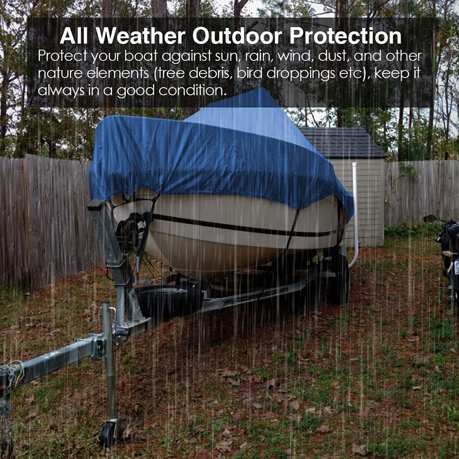Bootsbesitzer, diese Plane ist ein echter Schutzengel für dein Boot! Aus robustem 600D Oxford-Stoff mit doppelter PU-Beschichtung - das hält jedem Wetter stand. Ob Regen, Schnee, Sonne oder Wind - dein Boot bleibt sicher geschützt. Die wasserdichte Beschichtung sorgt dafür, dass keine Nässe durchkommt, und die UV-Beständigkeit verhindert, dass die Farbe ausbleicht. Mit verstellbaren Gurten und einer elastischen Kordel am Saum sitzt die Plane perfekt und wird nicht weggeweht. Doppelt genähte Nähte mit wasserdichten Bändern - da kommt nichts durch! Passt für V-Rumpf Boote, Ruderboote, Angelboote - einfach die richtige Größe aussuchen. In Blau erhältlich, sieht auch noch gut aus. Mit praktischer Aufbewahrungstasche - nach Gebrauch einfach zusammenfalten und verstauen. Ob bei Lagerung, Transport oder wenn das Boot mal länger steht - mit dieser Plane investierst du in die Langlebigkeit deines Bootes. Einfach überziehen, festzurren - und du kannst beruhigt sein!