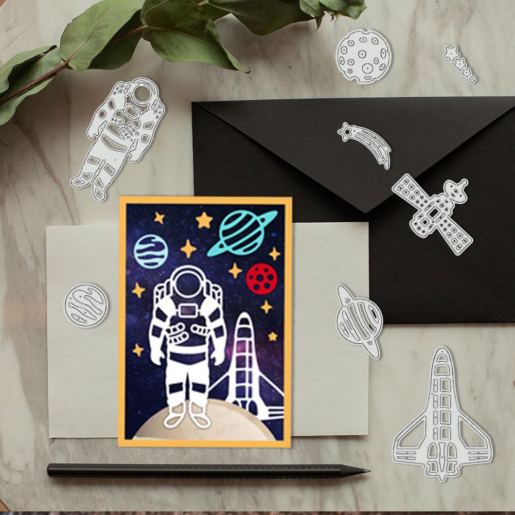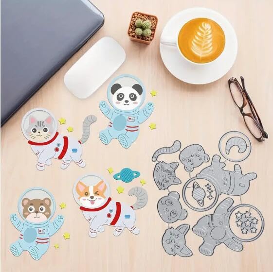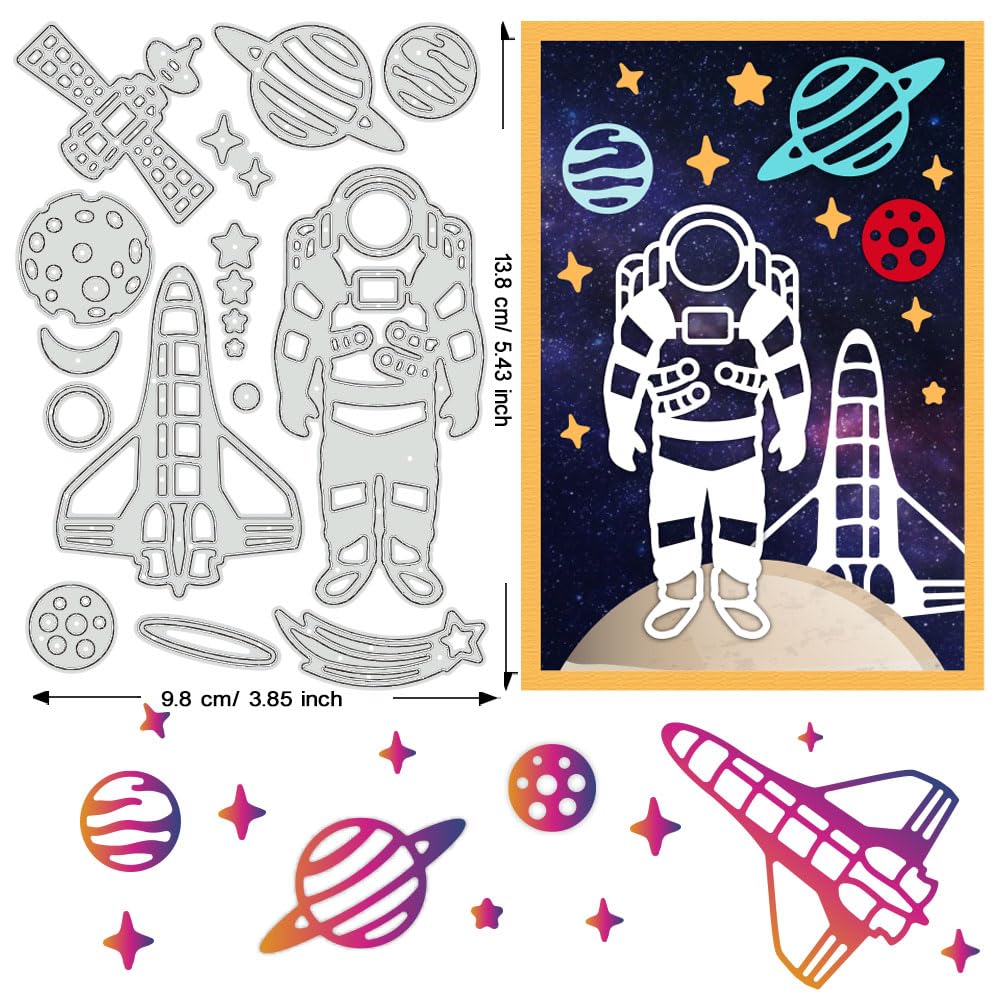 Entdecke deine Kreativität! Diese Metall-Stanzformen im Astronauten-Design sind perfekt für alle Bastelfans. Aus robustem Karbonstahl - messerscharf und langlebig. Größe ca. 10,2x11,4cm, silberfarben. Ideal für Scrapbooking, Karten, Alben oder Prägetechniken. Erstelle einzigartige 3D-Effekte und verziere deine Projekte mit Weltraum-Motiven. Einfach zu verwenden mit jeder Stanzmaschine. Tolles Geschenk für kreative Köpfe. Hol dir die unendlichen Weiten des Universums auf deine Bastelarbeiten! Perfekt für Karten, Deko oder Geschenkanhänger.