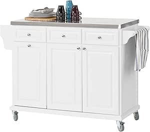 Brauchst du mehr Stauraum in der Küche? Diese Kücheninsel von EINHOM ist ein echter Alleskönner! Mit 102x45x92cm bietet sie richtig viel Platz für Kochutensilien, Geschirr oder Vorräte. Die 360-Grad-Rollen sind der Hit - du kannst den Wagen einfach dorthin schieben, wo du ihn gerade brauchst. Und wenn er stehen bleiben soll, einfach die Rollen arretieren! Mit 2 Schubladen und 2 Türen bleibt alles ordentlich verstaut. Die Tischplatte aus MDF mit Holzmaserung sieht nicht nur edel aus, sondern ist auch super pflegeleicht. Die verstellbaren Trennwände sind praktisch - du kannst den Stauraum ganz nach deinen Bedürfnissen einteilen. Seitliche Ablagen bieten zusätzlichen Platz für Gewürze oder Kochbücher. Der Aufbau ist wirklich einfach - mit der beiliegenden Anleitung kriegst du das locker hin. Ob als zusätzliche Arbeitsfläche, Servierwagen oder einfach als stylischer Stauraum - diese Kücheninsel macht in jeder Küche eine gute Figur!