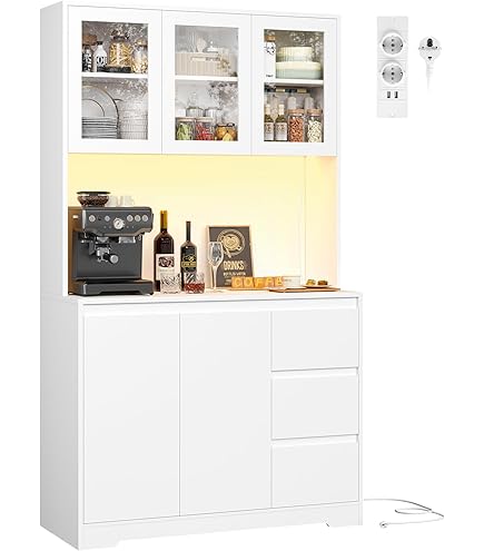 Wow, dieser Dolamaní Küchenschrank ist einfach der Hammer! Mit stolzen 140x40x175 cm bietet er unglaublich viel Stauraum für deine Küche. Das Besondere: Die integrierte LED-Beleuchtung kannst du sogar per Handy-App steuern - verschiedene Farben und sogar im Takt der Musik! Hergestellt aus hochwertigen MDF-Platten mit eleganten Acryltüren und Metallgriffen sieht das Teil einfach klasse aus. Drei Schubladen und sechs Schränke mit Türen bieten Platz für wirklich alles. Die drei höhenverstellbaren Fächer kannst du ganz nach deinen Bedürfnissen anpassen. Das retro-inspirierte Gartentürdesign mit Holzmaserung passt super in moderne Wohnungen. Mit 78,65 kg ist der Schrank richtig stabil und hat sogar Kippschutz für mehr Sicherheit. Montage ist nötig, aber in ca. 30 Minuten erledigt. Achtung: Wegen der Größe kommt der Schrank in 3 Paketen, die vielleicht nicht gleichzeitig ankommen - aber das Warten lohnt sich definitiv!