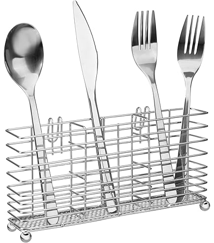 Ordnung in der Küche war noch nie so einfach! Dieser Edelstahl-Halter bringt System in deine Kochutensilien. Mit 3 praktischen Fächern für Löffel, Messer und Co., plus 3 abnehmbaren Haken für Flaschenöffner oder Scheren. Die Entwässerungslöcher sorgen dafür, dass alles schnell trocknet. Montage ganz ohne Bohren - einfach sauber machen, Aufkleber entfernen, andrücken und 24 Stunden warten. Die mitgelieferte Auffangschale schützt deine Arbeitsplatte. Aus rostfreiem Edelstahl, langlebig und pflegeleicht. Ob an der Wand oder auf dem Tisch - so wird Aufräumen zum Kinderspiel!