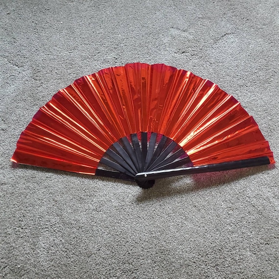 Cool bleiben war noch nie so stylisch! Dieser große Bambus-Faltfächer ist der Hit auf Festivals, Raves und Partys. Mit lautem Klack-Effekt für dramatische Auftritte. Aus robustem Bambus und wasserdichter Nylon-Bespannung. Geschlossen 34cm, geöffnet stolze 64cm Breite. Perfekt für Drag Shows, Burlesque oder einfach zum Abkühlen beim Tanzen. Zusammenklappbar - passt in jede Tasche. Siehst du damit einfach umwerfend aus und bleibst dabei cool!