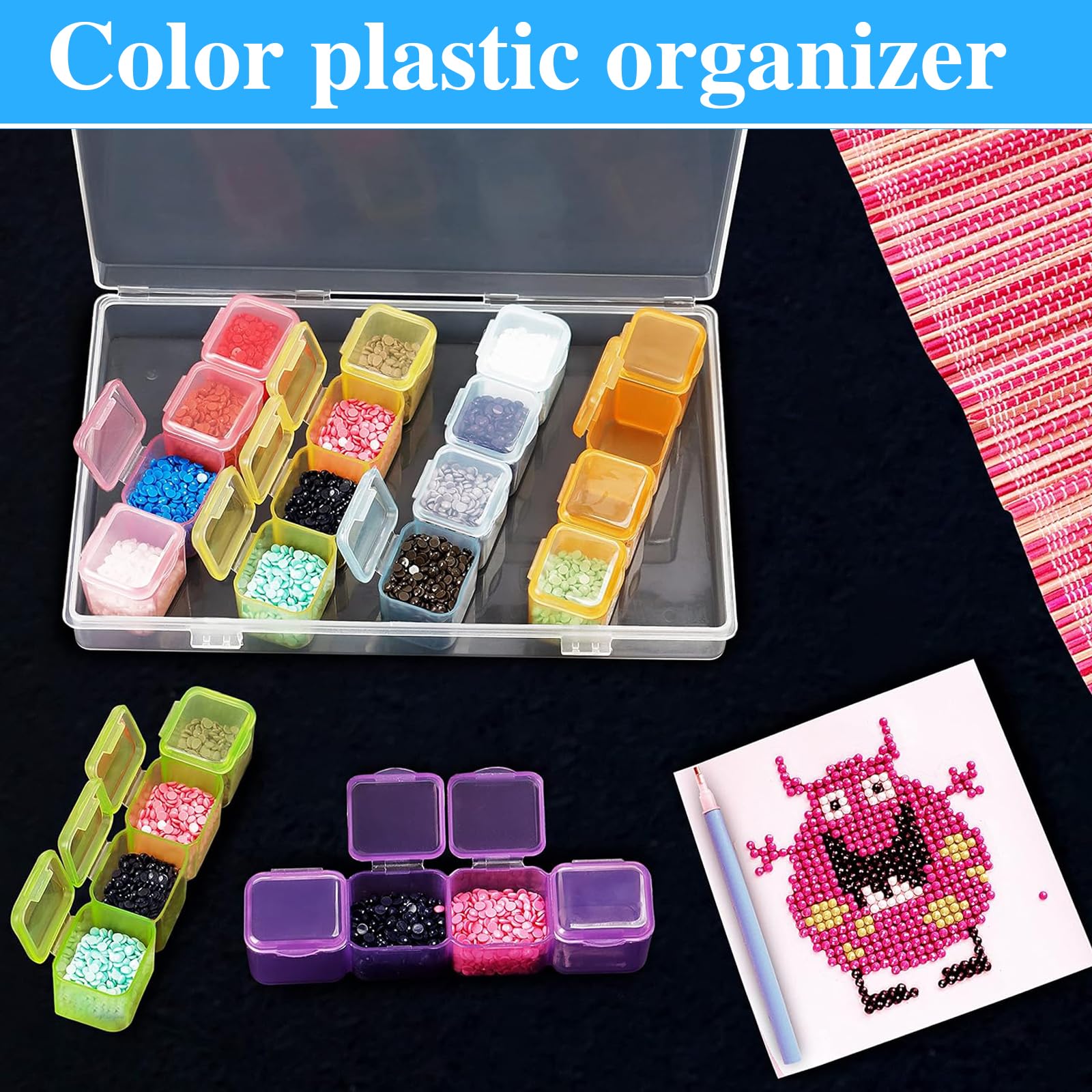 Boah, diese Sortierbox mit 28 Fächern ist ja mal der absolute Game-Changer für alle Bastler und Diamond Painting Fans! Die große Box (17,5x10,7x2,5cm) enthält 28 kleine Einzelfächer (2,3x1,9x2,1cm) - perfekt zum Sortieren von Diamanten, Perlen, Saatgut oder anderen Kleinteilen. Jedes Fach hat einen eigenen Deckel, damit nichts verstaubt oder herausfällt. Aus hochwertigem, durchsichtigem Kunststoff - super robust und langlebig. Das Beste: Es sind leere Aufkleber dabei, damit du alles perfekt beschriften kannst. Ob für Diamantmalerei, Nähzubehör, Elektronikteile oder Pflanzensamen - mit dieser Box hast du endlich Ordnung in deinem Bastelbereich! Total platzsparend und praktisch für unterwegs.