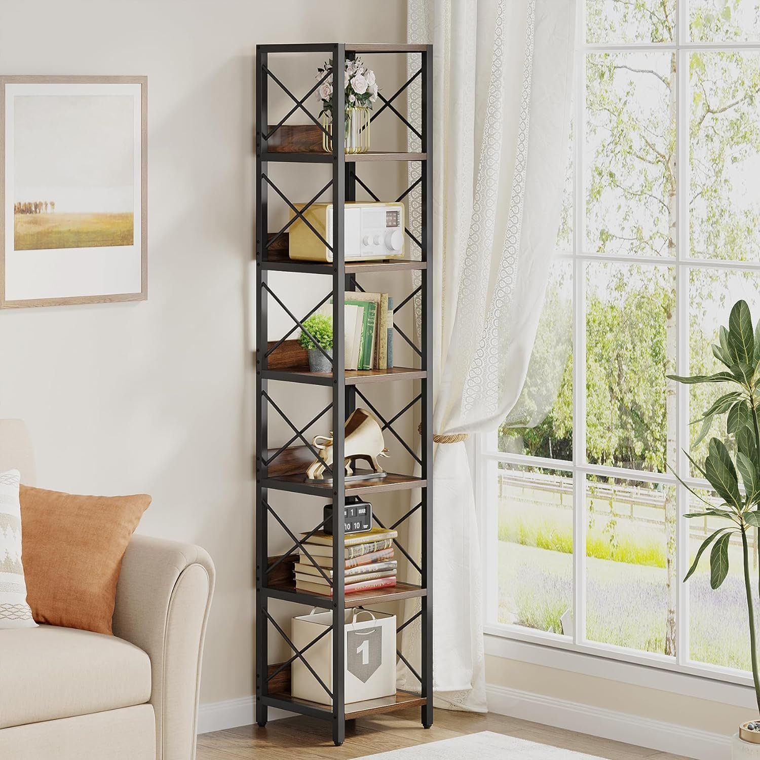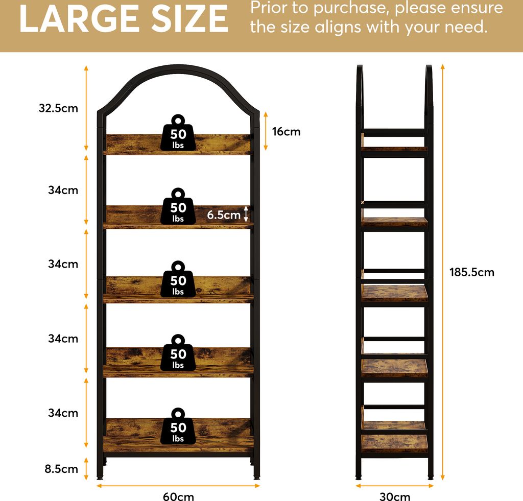 Wow, dieses Tribesigns Bücherregal bringt industriellen Charme in dein Zuhause! Mit stolzen 180 cm Höhe und 6 geräumigen Ebenen bietet es jede Menge Stauraum für Bücher, Deko, Pflanzen oder was auch immer du ordnen willst! Das markante X-Design an den Seiten verleiht dem Regal einen modernen, industriellen Look der absolut im Trend liegt! Aus hochwertigem E0-Brett und robustem Metallrahmen gefertigt - stabil, langlebig und absolut kippsicher! Jedes Regal trägt bis zu 34 kg - da kannst du auch schwere Büchersammlungen sicher unterbringen! Das wasserfeste und kratzfeste Material sorgt für lange Freude an deinem neuen Möbelstück! Mit dem mitgelieferten Kippschutz-Kit einfach an der Wand befestigen - maximale Sicherheit, besonders mit Kindern oder Haustieren! Perfekt fürs Wohnzimmer, Homeoffice, Schlafzimmer oder Flur - überall wo du Ordnung und Stil willst! Einfache Montage mit beiliegender Anleitung und Werkzeug - in kurzer Zeit steht dein neues Regal! Tribesigns gewährt 18 Monate Garantie und bietet freundlichen Kundenservice bei Fragen! Also, wenn du nach einem stylischen, stabilen Regal suchst, das viel Stauraum bietet, ist dieses Tribesigns Modell genau das Richtige für dich!