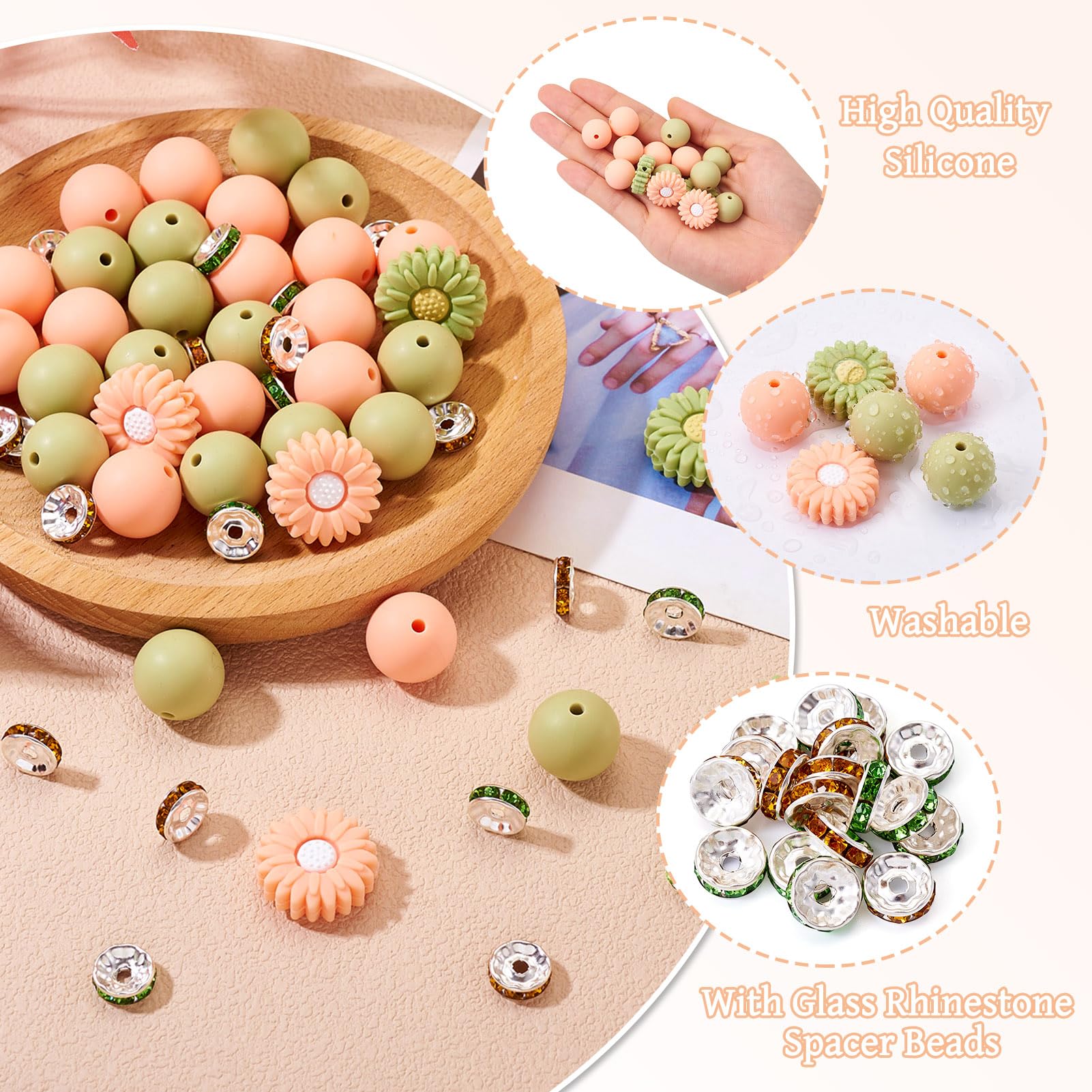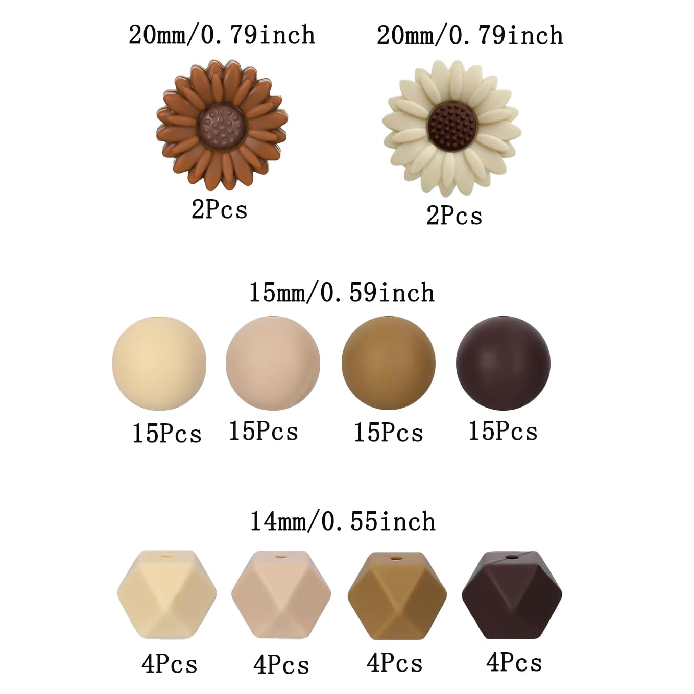 Bastelfreude pur! Dieses bunte Silikonperlen-Set enthält satte 100 Teile in 14 verschiedenen Styles - von niedlichen Gänseblümchen über Würfel, Sechsecke bis hin zu runden Perlen. In herbstlichen Brauntönen gehalten, sind sie perfekt für die aktuelle Jahreszeit. Jede Perle hat ein mittiges Loch (2mm), durch das du ganz easy Fäden oder Bänder ziehen kannst. Die Größen variieren zwischen 11mm und 15mm - ideal für abwechslungsreiche Designs. Aus weichem, flexiblem Silikon gefertigt, sind die Perlen angenehm zu tragen und gehen nicht so schnell kaputt. Ob Armbänder, Halsketten, Ohrringe, Schlüsselanhänger oder Handy-Accessoires - deiner Kreativität sind keine Grenzen gesetzt. Perfekt für DIY-Projekte, Geschenke oder einfach zum Selbermachen. Mach deine eigenen Schmuckstücke einzigartig mit diesen vielseitigen Perlen!