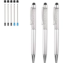 Schreiben und tippen war noch nie so stylisch! Dieses 3er-Set Stylus Kugelschreiber kombiniert elegantes Design mit praktischer Funktion. Jeder Stift hat ein funkelndes Diamant-Design und einen Gummi-Touchscreen-Kopf für alle kapazitiven Displays. Inklusive 5 Ersatzminen (3 schwarz, 2 blau) und 5 Gummispitzen. Einfach drehen zum Öffnen - die Mine lässt sich schnell wechseln. Perfekt für iPhone, iPad, Kindle und alle Touchscreen-Geräte. Super für Schule, Büro oder unterwegs. Das schicke Silber-Design macht jeden Schreibtisch zum Hingucker. Auch ein tolles Geschenk für Freundinnen, Kolleginnen oder Studentinnen. Wichtig: Hauptfunktion ist das Schreiben - die Touchscreen-Funktion ist ein praktisches Extra. Mit Clip für Jackentasche oder Notizbuch. Hol dir das komplette Set für alle Schreib- und Tipp-Anlässe!