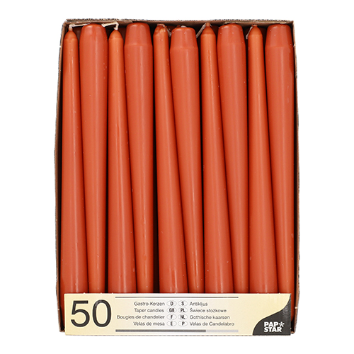 Stimmungsvolles Licht in edlem Violett! Die PAPSTAR Leuchterkerzen sind perfekt für festliche Anlässe, romantische Dinner oder gemütliche Abende. Im praktischen Pack mit 50 Stück - ideal für Gastronomie, Eventplaner oder private Feiern. Jede Kerze ist 25 cm hoch bei 2,2 cm Durchmesser und brennt satte 7 Stunden lang. Hergestellt aus hochwertigem Paraffin für eine gleichmäßige, rußarme Verbrennung. Die violette Farbe sieht super elegant aus und passt zu vielen Dekorationen. Kombinier die Kerzen am besten mit passenden Tischdecken und Servietten für ein harmonisches Gesamtbild. Wichtig: Immer beaufsichtigen lassen und mindestens 10 cm Abstand zwischen brennenden Kerzen halten. Außer Reichweite von Kindern und Haustieren aufstellen. Mit diesen Kerzen kreierst du im Handumdrehen eine gemütliche Atmosphäre!