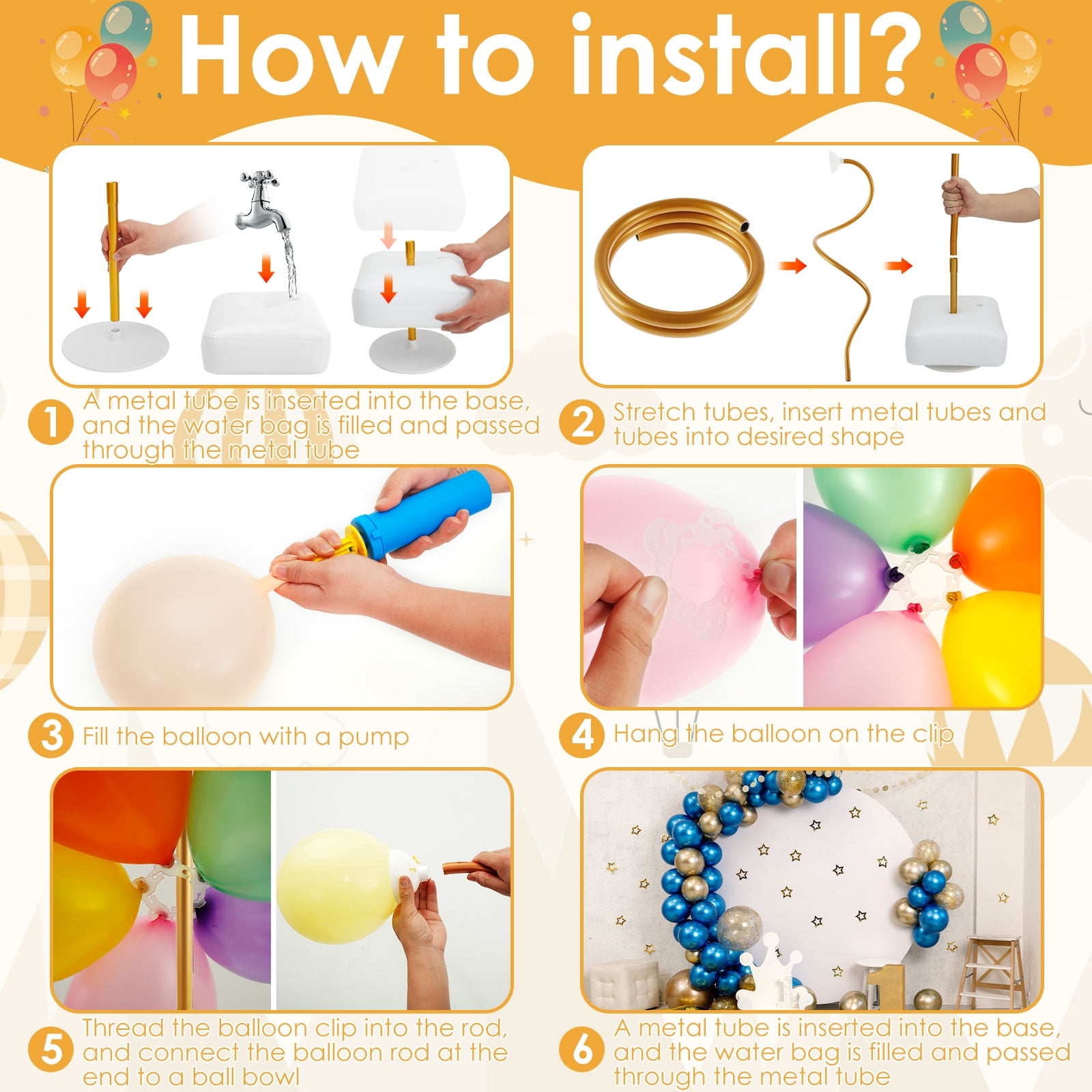 Mach deine Party zum Blickfang! Mit diesem 8-teiligen Ballonständer-Set von Runiash gestaltest du im Handumdrehen beeindruckende Ballonarrangements. Die 76,2 cm langen Ständer aus stabilem Kunststoff sind perfekt für Tische, Theken oder andere Ablageflächen. Einfach die Ballons an den Ständern befestigen und schon hast du professionell wirkende Dekorationen für Hochzeiten, Geburtstage, Babypartys oder andere Feiern. Die Mittelstücke und Halterungen sind clever designed und halten die Ballons sicher an ihrem Platz. Ohne lästiges Kleben oder kompliziertes Aufbauen kreierst du so tolle Dekorationselemente, die deine Gäste begeistern werden. Das Set ist wiederverwendbar und damit eine lohnende Investition für alle, die regelmäßig feiern. Die Ständer lassen sich platzsparend verstauen und sind schnell wieder einsatzbereit. Hinweis: Ballons sind nicht im Lieferumfang enthalten - du kannst sie ganz nach deinem Geschmack und Farbkonzept auswählen.