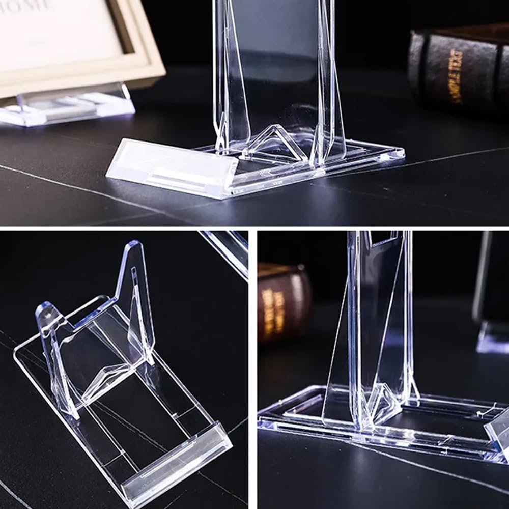 Perfekt präsentieren! Diese 10 transparenten Acryl-Ständer zeigen deine Schätze optimal. 7x5x4cm Größe - verstellbarer Neigungswinkel. Kanten präzise geschnitten - keine scharfen Ecken. Stabiles Dreieck-Design - hält sicher. Ideal für Bücher, Fotos, Kunstwerke, Elektronik. Unsichtbare Präsentation - der Fokus bleibt auf deinen Exponaten!