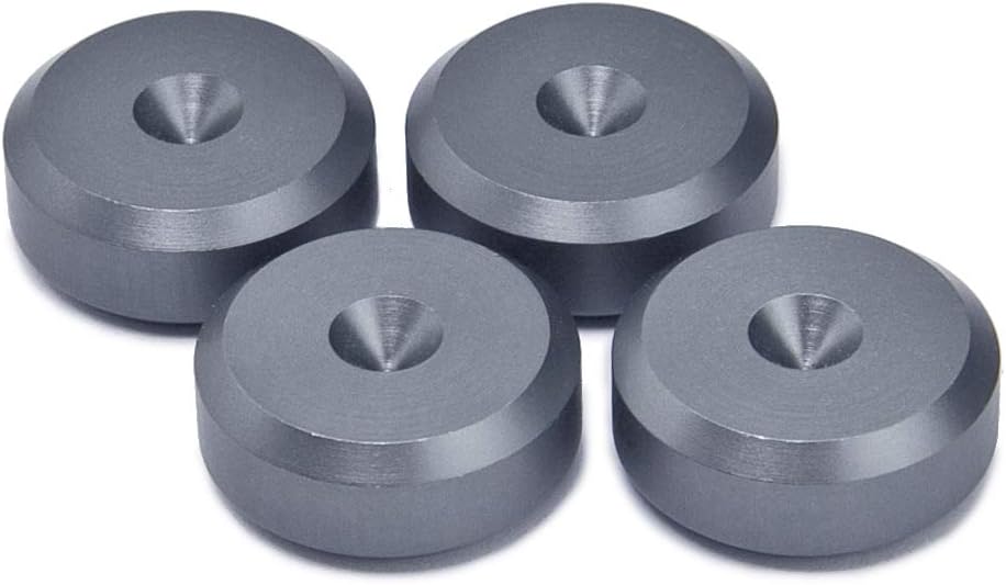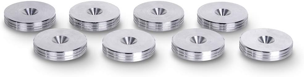 Schütze deine Böden und verbessere gleichzeitig deinen Sound! Diese hochwertigen Aluminium-Unterlagen für Lautsprecher-Spikes sind ein echter Game-Changer. Im 4er-Set geliefert, passen sie perfekt unter deine Lautsprecher oder HiFi-Möbel. Mit 20mm Durchmesser und 8mm Stärke bieten sie eine stabile Auflagefläche und verhindern lästige Druckstellen auf Holz- oder Laminatböden. Das zentrale Registerloch sorgt dafür, dass die Spikes sicher einrasten und nicht verrutschen. Hergestellt in der EU aus massivem Aluminium mit fein maschinierter Oberfläche - das merkt man einfach! Nicht nur dein Boden wird es dir danken, auch der Sound profitiert von der stabilen Auflage. Ein kleines Teil mit großer Wirkung - ob für teure Lautsprecher, Plattenspieler oder andere empfindliche Möbel. Einfach unter die Spikes legen und sich über makellose Böden und besseren Klang freuen!
