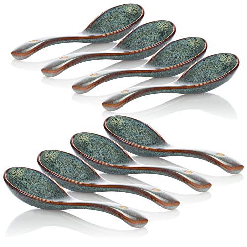 Mensch, diese Löffel sehen ja toll aus! Vier Stück im Retro-Design mit schönen Blumenmustern - jeder etwas anders. Aus Keramik gefertigt, ungiftig und hitzebeständig. Mit 17cm Länge perfekt für Suppen, Ramen oder Reis. Der gebogene Stil ist super praktisch zum Halten, rutscht nicht aus der Hand. Die Unterglasur-Technologie sorgt dafür dass die Muster nicht verblassen. Oberfläche ganz glatt, kratzt nicht am Mund. Passt in die meisten Schüsseln und ist platzsparend zu verstauen. Bringt asiatisches Flair in deine Küche! Ob für den täglichen Gebrauch oder wenn Gäste kommen - damit macht das Essen gleich mehr Spaß!
