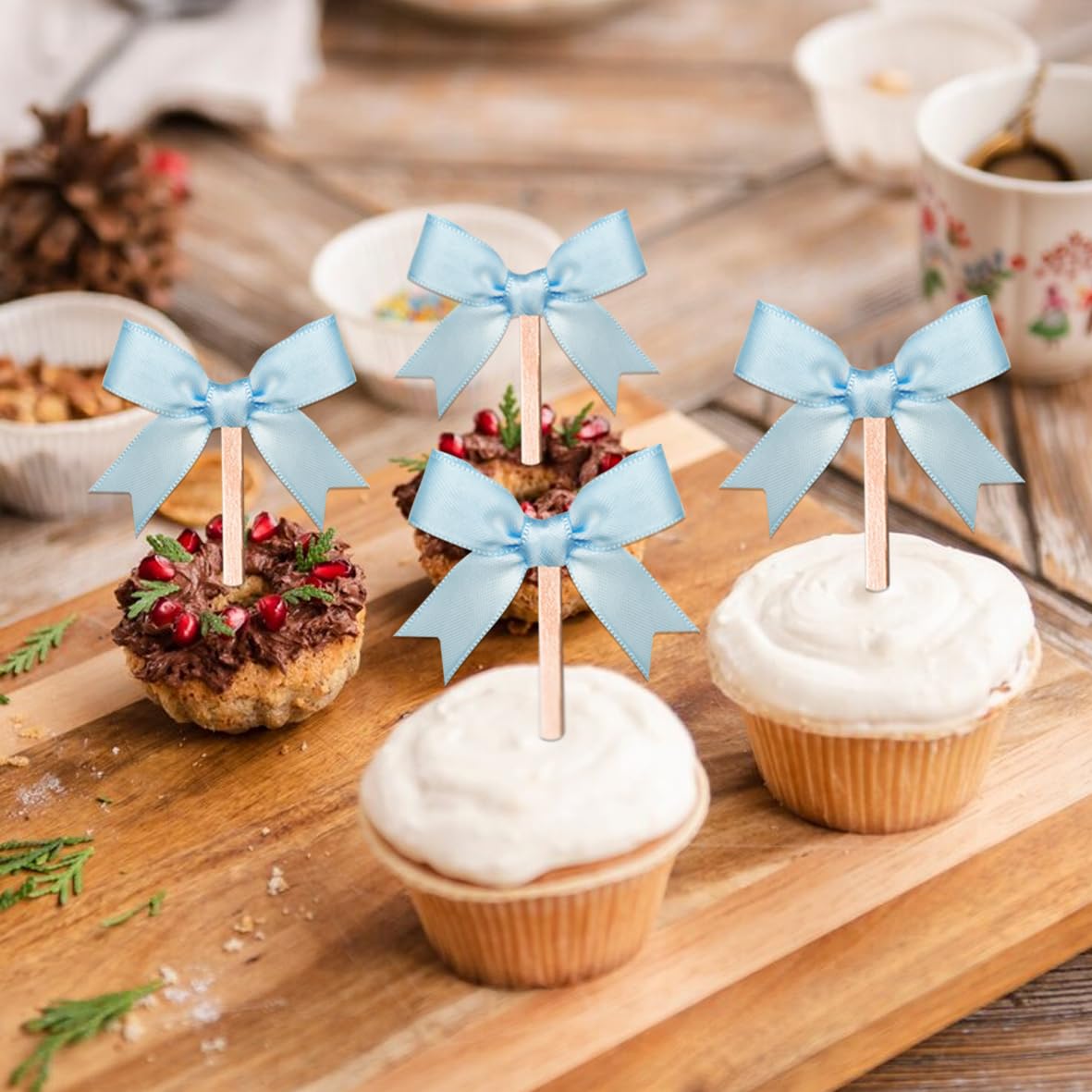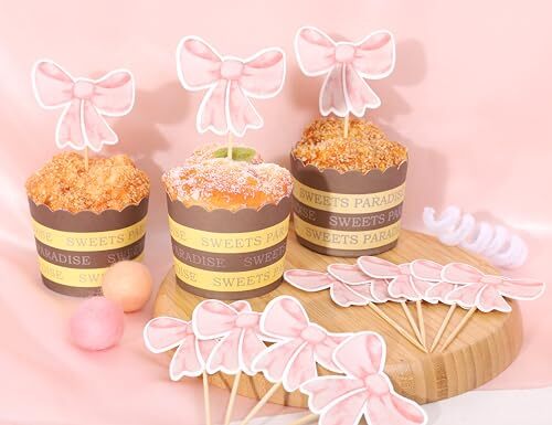 Mach deine Torten und Cupcakes zum absoluten Hingucker! Dieses Set mit 30 rosa Schleifen in 8 verschiedenen Designs verwandelt jedes Dessert in ein kleines Kunstwerk. Aus stabilem Papierkarton gefertigt, knicken die Schleifen nicht um und behalten ihre Form. Die 10cm langen Papierstäbe sind perfekt dimensioniert für Cupcakes, Muffins und Torten. Einfach die beiliegenden Klebefolien verwenden, Schleife und Stab verbinden - und schon kann die Dekoration beginnen! Super einfach, selbst für Bastelanfänger. Perfekt für Kindergeburtstage, Taufen, Afternoon Tea oder jede andere Feier, die etwas Besonderes verdient hat. Die rosa Farbe ist frisch und süß - ideal für Mädchen-Partys oder romantische Anlässe. Mit 30 Schleifen im Set hast du genug für alle deine Desserts und musst nicht nachkaufen. Ein echter Game-Changer für alle, die ihre Backkreationen aufwerten möchten! Einfach in die Cupcakes stecken und staunen, wie professionell alles aussieht. Auch super als Geschenk für Hobby-Bäcker!