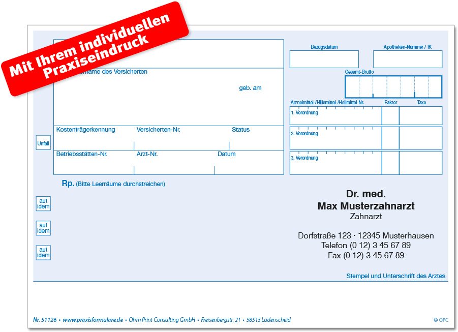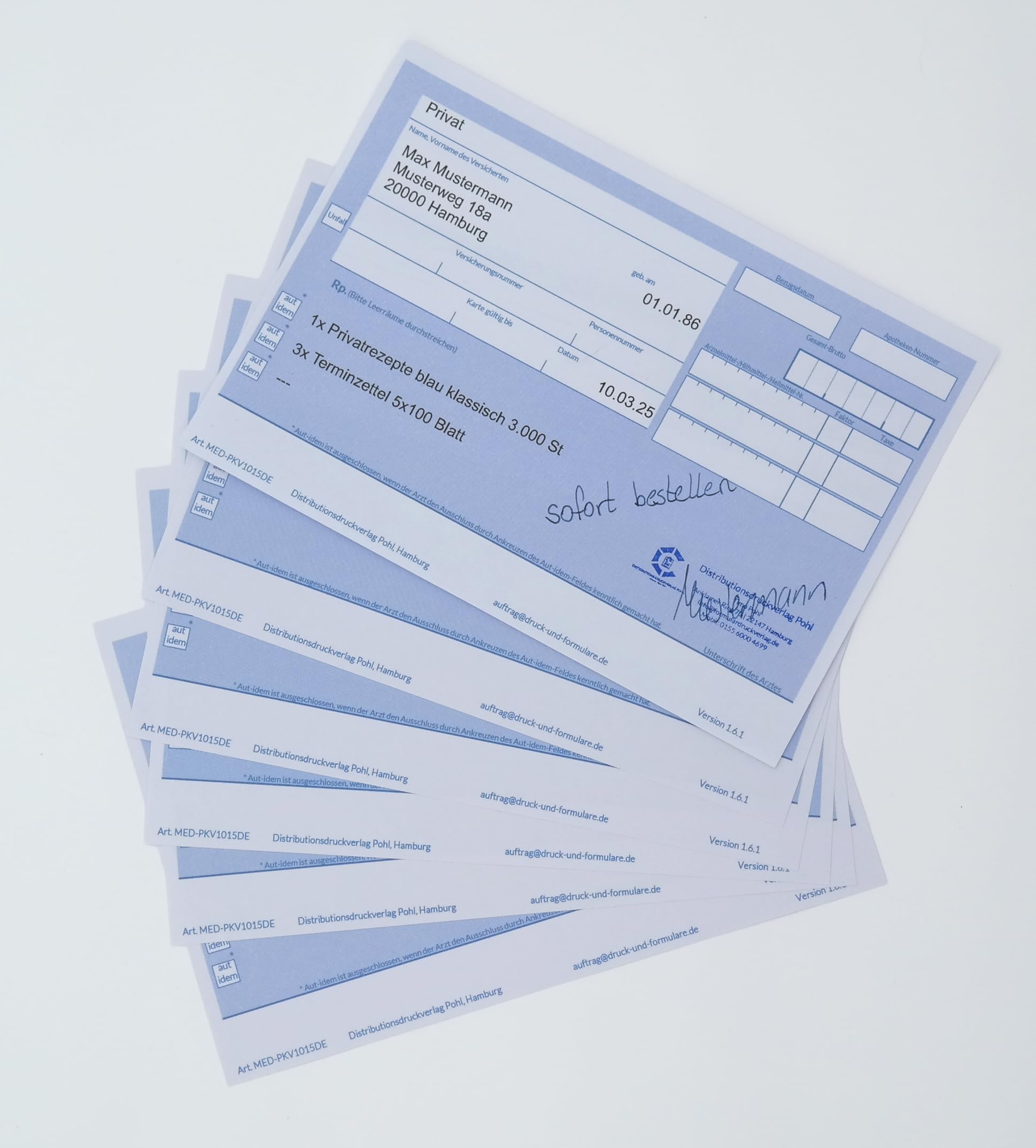Alles für die perfekte Patientenversorgung! Diese blauen Privatrezeptformulare sind genau das, was du für deine Praxis brauchst. Das Paket enthält 1000 Stück im praktischen DIN A6-Format - ideal für den täglichen Einsatz in Arztpraxen, Kliniken oder Heilpraktiker-Praxen. Hergestellt in Deutschland auf hochwertigem 90g-Papier, das sich super beschriften lässt. Egal ob mit Kugelschreiber, Füller oder per Drucker - die Oberfläche nimmt die Tinte sofort an, ohne zu verwischen. Besonders praktisch: Die Formulare sind ohne lästige Leimung oder Vordrucke, sodass du sie ganz flexibel nutzen kannst. Perfekt abgestimmt auf die Anforderungen der privaten Krankenversicherungen und chipkartengerecht. Auch für verschreibungspflichtige Medikamente außerhalb der GKV geeignet. Ein echter Klassiker in Blau, der in keiner Praxis fehlen sollte. Einfach professionell und zuverlässig!