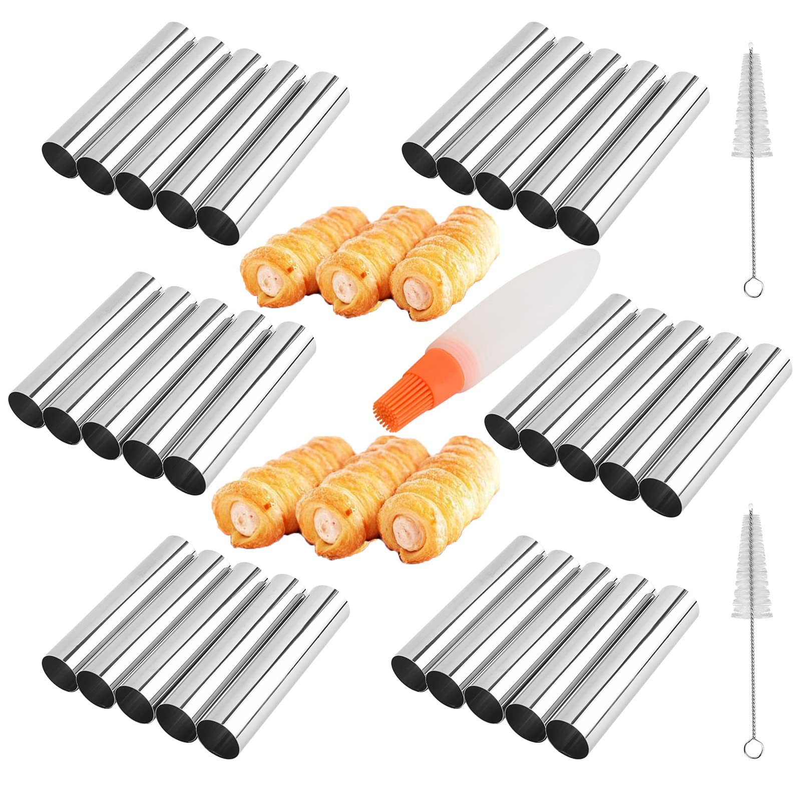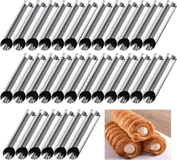 Hmm, leckeres Gebäck selbst gemacht! Mit diesen 30 Edelstahl-Formen geht's ganz einfach! Perfekt für Cannoli, Sahnerollen, Croissants und andere Köstlichkeiten! Aus 430 Edelstahl - rostfrei und super leicht zu reinigen! Jede Form ist 12,7cm hoch und 3,6cm im Durchmesser - ideale Größe! Einfach den Teig in Streifen schneiden und spiralförmig um die Form wickeln! Dann backen oder frittieren - die Formen sind hitzebeständig! Nach dem Backen einfach den Teig von der Form ziehen - geht super leicht! Dann mit Sahne, Pudding oder anderen Füllungen befüllen! Perfekt für Familienfeiern, Weihnachten oder einfach so! Sieht aus wie vom Profi - aber ganz einfach selbst gemacht! Auch für dänische Brötchen oder Pizzabrötchen geeignet! Die glatte Oberfläche sorgt für perfektes Antihaft-Verhalten! 30 Stück im Set - ideal wenn du mehrere Gäste bewirten willst! Platzsparend zu verstauen - einfach ineinander stecken! Mach dein nächstes Kaffeekränzchen zu etwas Besonderem! Auch super als Geschenk für Hobby-Bäcker! Hol dir diese Formen und werde zum Gebäck-Profi!
