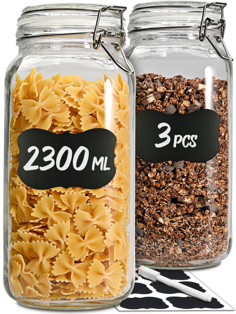 Mega praktisch diese Keyoung Einmachgläser! Mit 2000ml Fassungsvermögen hast du genug Platz für Vorräte, selbstgemachte Marmelade oder Getreide. Der Bügelverschluss macht sie absolut luftdicht - da bleibt alles frisch und knackig. Und das Beste: Die Gläser sind spülmaschinengeeignet! Einfach reinigen und wieder verwenden. Perfekt für die Küche, aber auch zum Verschenken von selbstgemachten Leckereien. Die Gläser sehen dazu noch total stylisch aus - ob im Regal oder auf dem Tisch, das ist einfach schöne Aufbewahrung. Robust und langlebig, damit hast du lange Freude. Einfach befüllen, verschließen und fertig! So macht Vorratshaltung Spaß. Auch für trockene Lebensmittel wie Nüsse, Mehl oder Kekse super geeignet. Praktischer geht's kaum!