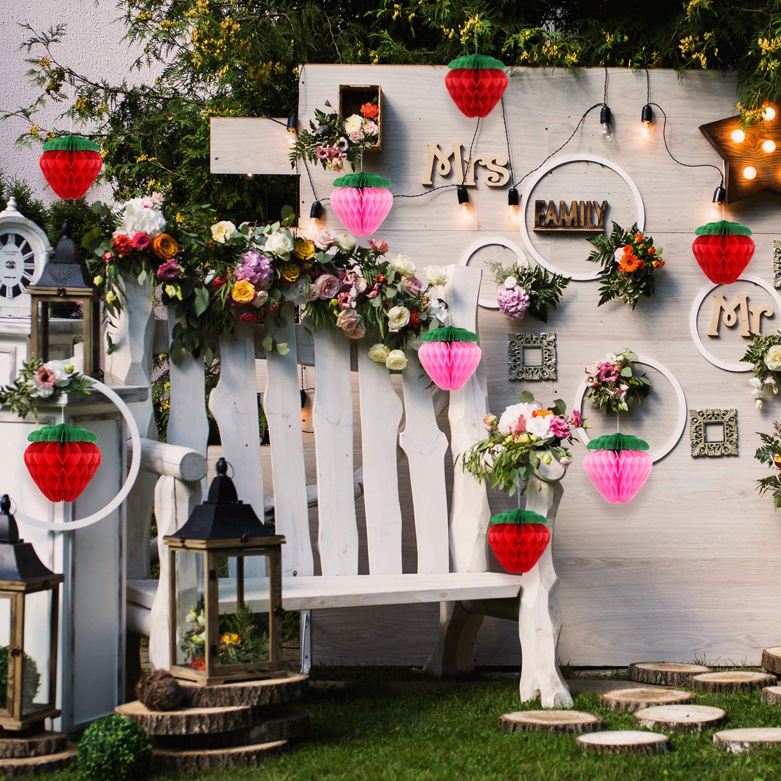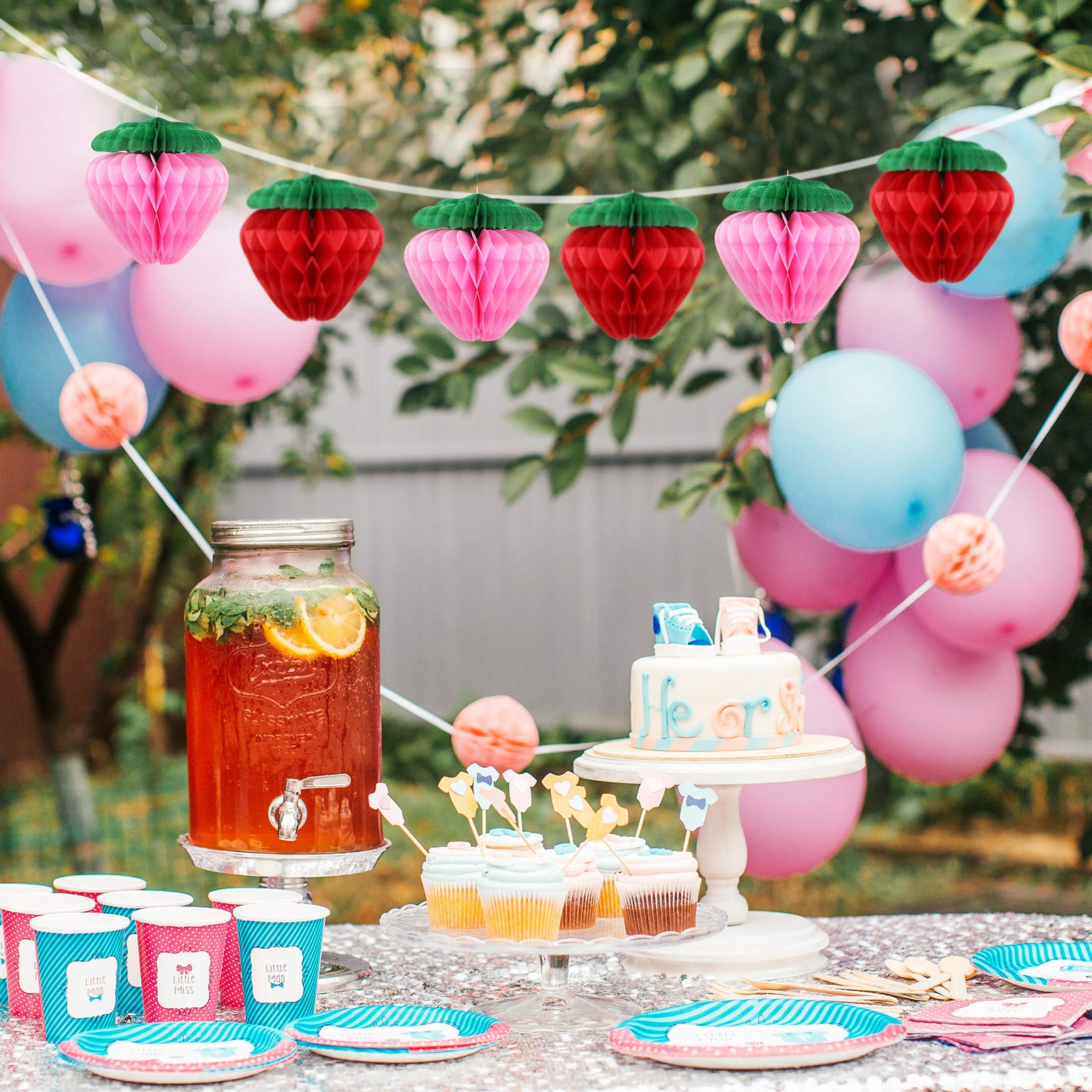 Diese süßen Erdbeer-Wabendekorationen sind der Hit für jede Feier! Mit 6 Stück in knalligen Farben verwandelst du jeden Raum in eine fröhliche Partyzone. Jede Erdbeere misst ca. 20x20x15 cm und ist aus robustem Papier gefertigt. Einfach aufhängen - an Fenstern, Türen oder der Decke - und schon verbreiten sie gute Laune! Perfekt für Geburtstage, Hochzeiten, Babypartys oder Weihnachtsfeiern. Die lebendigen Farben sorgen für eine festliche Atmosphäre und die Wabenform gibt den Erdbeeren ein besonderes 3D-Design. Super praktisch: Sie lassen sich leicht transportieren und lagern. Auch als Fotohintergrund machen sie sich toll! Ob im Wohnzimmer, Garten oder Partyraum - diese Erdbeer-Deko bringt sofort Sommerfeeling ins Haus. Einfach aufhängen und sich über die fröhliche Stimmung freuen!