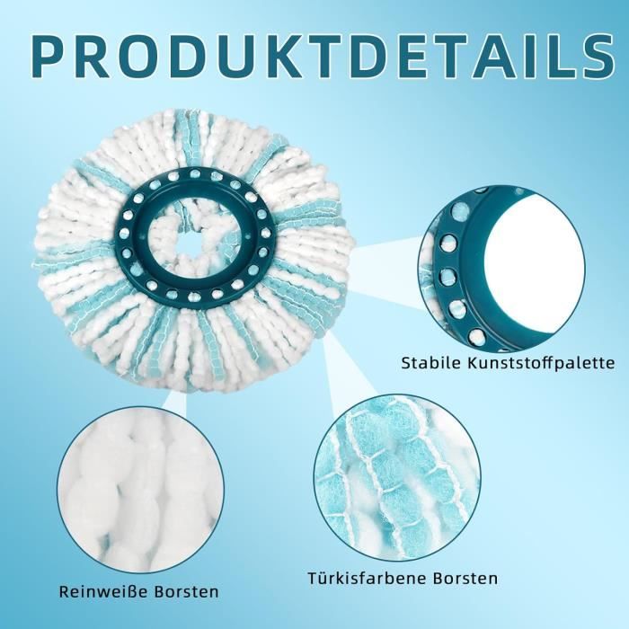Dein Leifheit Clean Twist Wischmop bekommt neue Power! Diese zwei Ersatz-Bürstenköpfe mit 15,8 cm Durchmesser machen aus deinem Mop einen echten Schrubber. Mit 360-Grad-Drehung und 180-Grad-Neigung erreicht er jede noch so versteckte Ecke. Die dreilagigen Nylon-Borsten sind super hart und entfernen selbst hartnäckigsten Schmutz. Aus robustem PP-Kunststoff - hält auch bei häufigem Gebrauch problemlos durch. Perfekt für Fliesen, Beton, Holz, Marmor - einfach alle harten Oberflächen. Einfach aufdrücken - kein Werkzeug nötig! Die Montage dauert nur Sekunden. Besonders praktisch für Badezimmer-Ecken, Küchenspülen oder Garagenböden. Jeder Bürstenkopf hält 6-8 Monate - je nach Nutzung. Mach deine Reinigung noch effektiver - bestell diese praktischen Ersatz-Bürstenköpfe und gib deinem Leifheit Mop neuen Schwung!