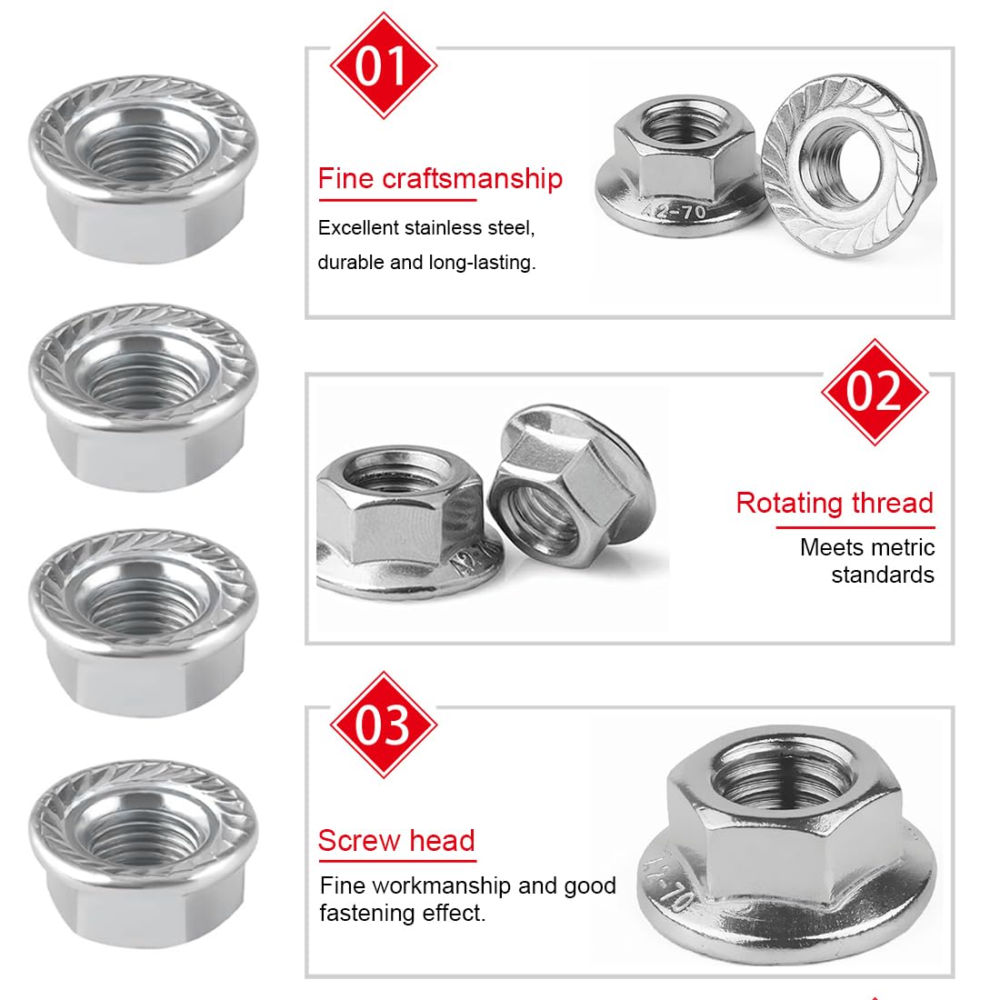 Brauchst du zuverlässige Muttern für dein Fahrrad? Dieses 12-teilige Set mit Fahrrad-Achsmuttern in den Größen M8, M10 und M12 ist genau das Richtige! Hergestellt aus hochwertigem Edelstahl A2-70 Klasse 304 sind diese Muttern korrosionsbeständig, hitzebeständig und extrem verschleißfest. Die spezielle Flanschzahn-Konstruktion erhöht den Reibungswiderstand und verhindert ein ungewolltes Lösen - perfekt für Teile, die nicht häufig demontiert werden müssen. Technische Daten: M10 Flanschmutter mit 1,5 mm Teilung und 10 mm Mutternhöhe. Diese Sechskantmuttern verringern das Risiko von Beschädigungen und lösen sich auch bei unebenen Montageflächen nicht so leicht. Ideal für Verbindungen mit dynamischen Belastungen wie Vibration und Stoß. Nicht nur für Fahrräder geeignet, sondern auch perfekt für Stahl-, Holz-, Maschinen- und Möbelarbeiten. Ob für zu Hause, im Auto oder in der Werkstatt - dieses vielseitige Muttern-Set ist immer griffbereit. Mach dein Fahrrad fit und sicher mit diesen qualitativ hochwertigen Achsmuttern!
