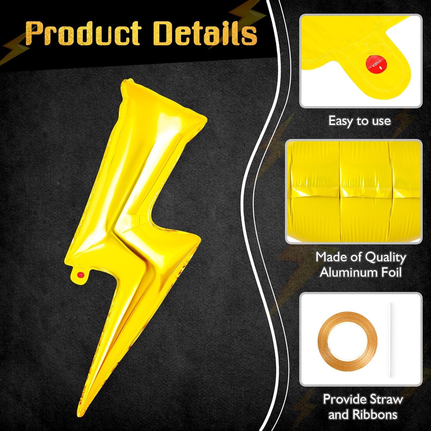 • Gleemix Riesen Blitz Folienballons - 4 Stück Gelbe Lightning Ballons 92cm Für Partys
