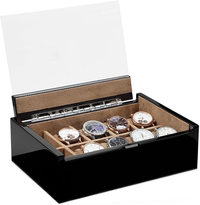 Deine Automatikuhren verdienen die beste Pflege! Dieser Uhrenbeweger hält deine wertvollen Zeitmesser immer in Bewegung - ganz leise und zuverlässig. Mit Platz für 10 Uhren (4 drehend, 6 Lagerplätze) in schicker Holzbox mit Glasdeckel. Die Motoren drehen im Wechsel links- und rechtsherum, jeweils 2 Minuten aktiv, 6 Minuten Pause. So bleiben deine Uhren immer aufgezogen und betriebsbereit. Die abnehmbaren Kissen passen für fast jede Armbandgröße. Die Box misst 30x23x18cm und wiegt 3,3kg - stabil und wertig. Perfekt für Sammler oder alle, die ihre Automatikuhren optimal pflegen wollen. Einfach Netzteil anschließen und deine Uhren genießen den Rundum-Service. Deine Uhren werden es dir danken!