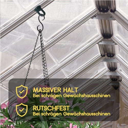 Endlich Ordnung im Gewächshaus! Diese 50 praktischen Clips aus robustem Kunststoff sind deine besten Helfer für mehr Platz und Organisation. Super einfach zu verwenden - einfach in die Schienen einklicken und mit einer Drehung fixieren, ganz ohne Werkzeug! Die Clips sind UV-beständig, frostsicher und wetterfest, halten also auch bei Sonne, Regen oder Schnee problemlos durch. Perfekt für Hängepflanzen, Kletterhilfen, Sonnenschutznetze oder sogar für Lampen. Das dunkelgrüne Design fügt sich dezent ins Grün ein und die abgerundeten Ecken schonen deine Pflanzen. Mit 3x2 cm Größe ideal für jedes Gewächshaus, Wintergarten oder Terrasse. So wird dein Gewächshaus zum organisierten Pflanzenparadies!