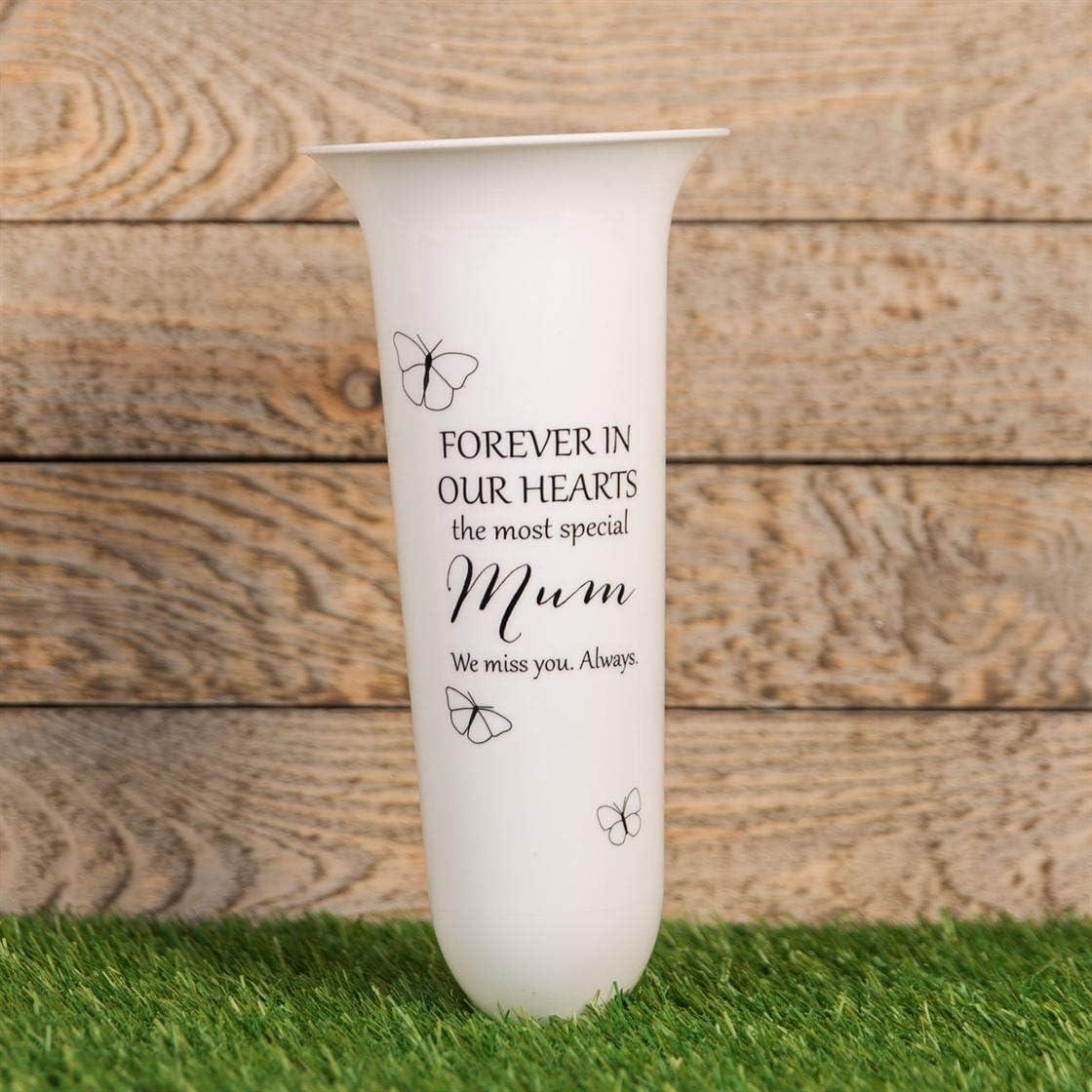Mit diesen stilvollen Grabvasen zeigst du deine Verbundenheit auf würdevolle Weise. Im Set sind 2 dunkelgrüne Vasen aus robustem PP-Kunststoff - wetterbeständig und pflegeleicht. Jede Vase hat einen 11cm langen Erdspieß und einen stabilen Sockel für sicheren Stand, auch bei Wind. Perfekt für frische oder Trockenblumen - deine Blumenarrangements bleiben sicher an ihrem Platz. Die schlichte, elegante Form fügt sich harmonisch in jede Friedhofsumgebung ein. Einfach zusammenzubauen aus drei Teilen - modular und flexibel einsetzbar. Auch für den eigenen Garten oder Balkon geeignet. Eine wunderbare Möglichkeit, dauerhaft an liebe Menschen zu erinnern. Die doppelte Stabilisierung durch Sockel und Erdspieß verhindert lästiges Umkippen. So bleiben deine Blumen immer schön präsentiert - ein Zeichen ewiger Wertschätzung und Erinnerung.