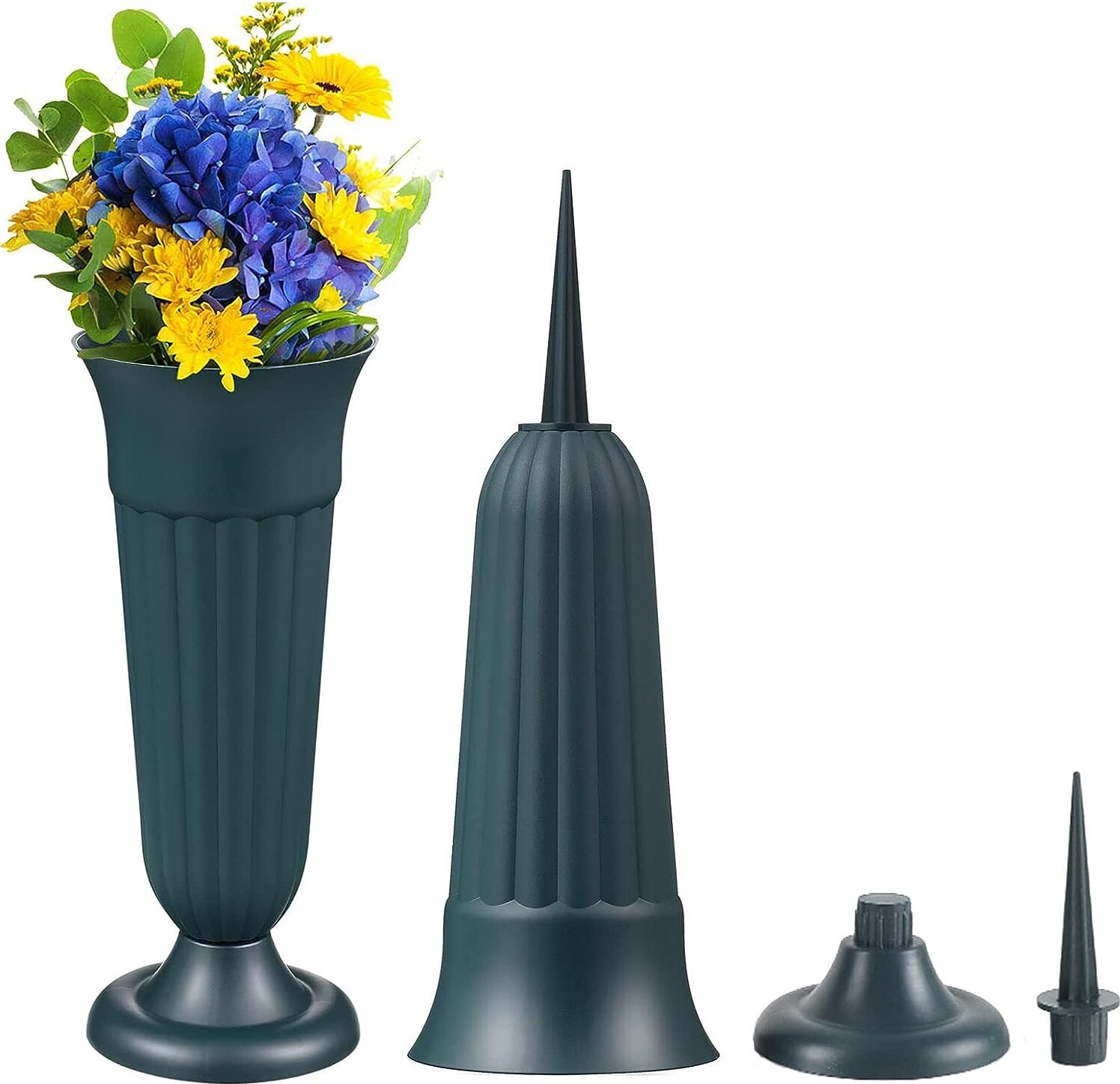 2 Stück Grabvasen Mit Erdspieß - Dunkelgrün Kunststoff Friedhofsvase