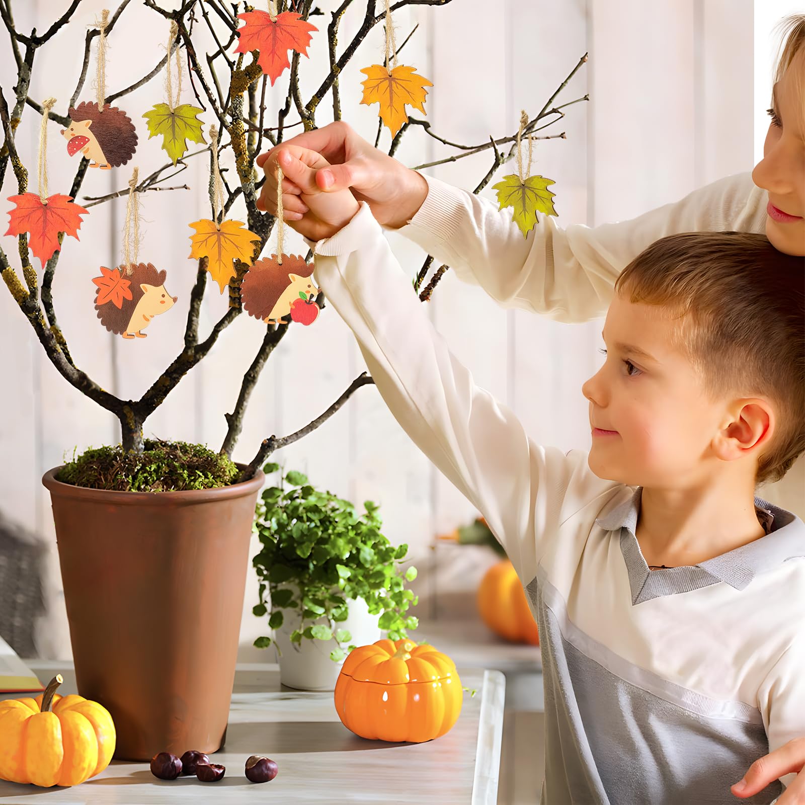 Wie gemütlich! Diese Herbstdeko aus Holz bringt sofort herbstliche Stimmung ins Haus. Das Set enthält 9 doppelseitig bedruckte Anhänger mit süßen Motiven wie Igeln, Wichteln, Kürbissen, Pilzen und Ahornblättern. Inklusive ist eine 5m lange Juteschnur zum einfachen Aufhängen. Ob am Fenster, an der Wand oder als Girlande - die Deko ist von beiden Seiten schön anzusehen. Die Anhänger sind aus natürlichem Holz gefertigt, leicht aber stabil, und die Farben sind total lebendig. Perfekt für Thanksgiving, Erntedank oder einfach so, um das Zuhause in eine gemütliche Herbst-Oase zu verwandeln. Du kannst die Figuren einzeln aufhängen oder kreativ kombinieren. Einfach ein Highlight für die kalte Jahreszeit! Schnell aufhängen und den Herbst genießen.