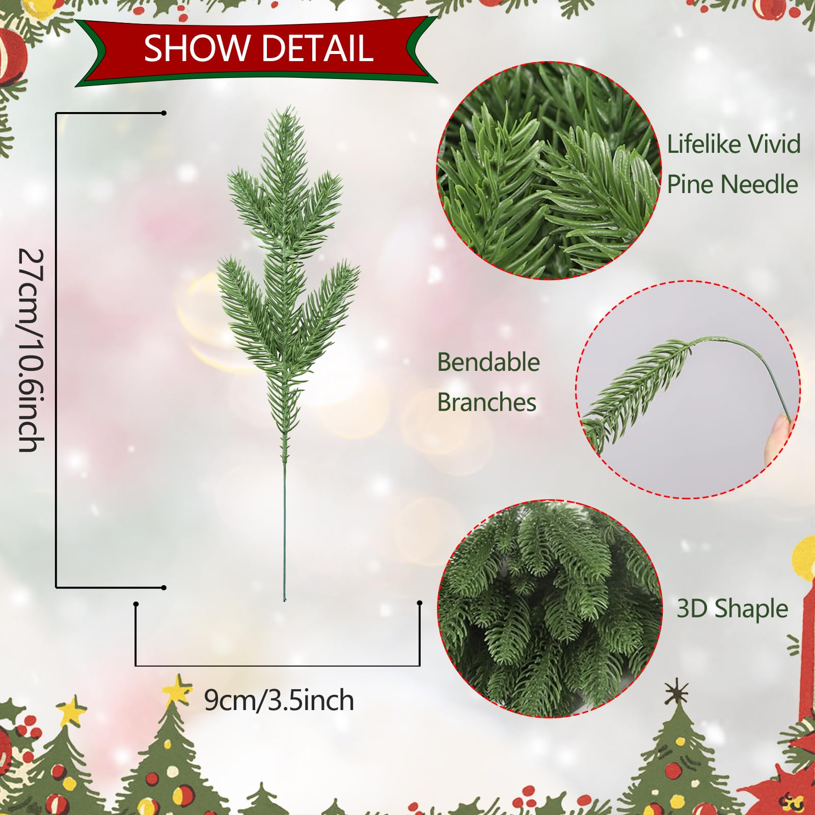 Weihnachtsstimmung das ganze Jahr über! Diese 50 künstlichen Tannenzweige sehen täuschend echt aus und sind perfekt für deine DIY-Weihnachtsdekoration. Jeder Zweig ist 26cm lang und hat 3 flexible Äste, die du nach Belieben biegen und formen kannst. Aus hochwertigem PE-Material gefertigt, sind die Zweige wasserdicht, langlebig und benötigen keine besondere Pflege. Die eingearbeiteten Eisen-Drähte in den Stielen ermöglichen dir, die Zweige in jede gewünschte Form zu bringen - ob für Kränze, Gestecke oder andere Dekorationen. Ideal für Weihnachtsbaum-Deko, Türkränze, Tischschmuck oder zur Verschönerung von Möbeln. Du kannst sie auch für Hochzeiten, Partys oder als Deko in Restaurant und Hotel verwenden. Da sie künstlich sind, nadeln sie nicht und du hast lange Freude an ihnen. Achtung: Da es sich um Kunststoff handelt, von offenen Flammen fernhalten! Mit diesen vielseitigen Zweigen wird deine Weihnachtsdekoration garantiert ein Highlight.