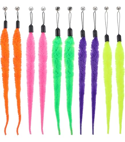 Miau! Deine Katze wird verrückt nach diesen bunten Würmchen sein! 25 Ersatzköpfe für deine Katzenangel in fünf knalligen Farben: Blau, Rosa, Gelb, Grün und Orange. Aus sicherem PP und Eisen Material - absolut unbedenklich für deinen Stubentiger. Einfach an der Angel befestigen und schon geht die Jagd los! Perfekt um die natürlichen Jagdinstinkte deiner Katze zu trainieren und die Bindung zu stärken. Die Würmchen sind 25cm lang - ideal zum Herumwirbeln und Jagen. Mach deine Katze glücklich und bestell dieses coole Spielzeug-Set! Dein Kätzchen wird dir dankbar sein für die actionreiche Spielzeit.