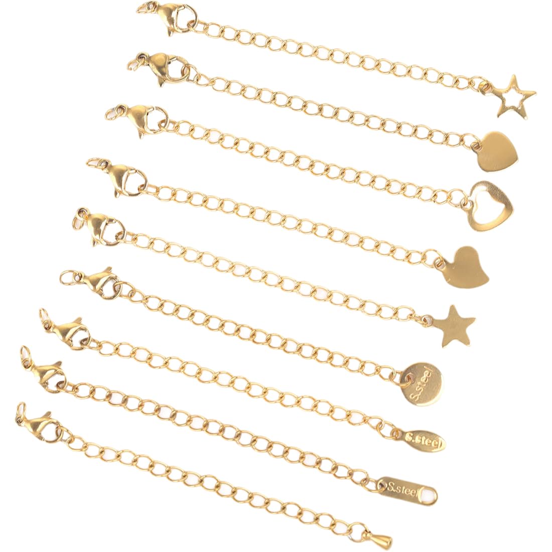 Deine Lieblingskette ist etwas zu kurz? Kein Problem mit diesen süßen Kettenverlängerungen! Im Set sind 6 Stück in Roségold und Gold-Optik - jeweils 6,5 cm lang. Perfekt, um Halsketten, Armbänder oder sogar Fußkettchen zu verlängern. Der Karabinerverschluss ist total easy zu bedienen. Das Material ist Kupfer mit hochwertiger Vergoldung, nickelfrei und auch für empfindliche Haut geeignet. So kannst du deinen Schmuck ganz individuell anpassen, ohne gleich was Neues kaufen zu müssen. Ob als Verlängerung oder als stylisches Detail - die Teile sind vielseitig einsetzbar. Und sie kommen in einem praktischen Beutel, super für unterwegs oder zur Aufbewahrung. Einfach ein Must-have für alle Schmuck-Fans!