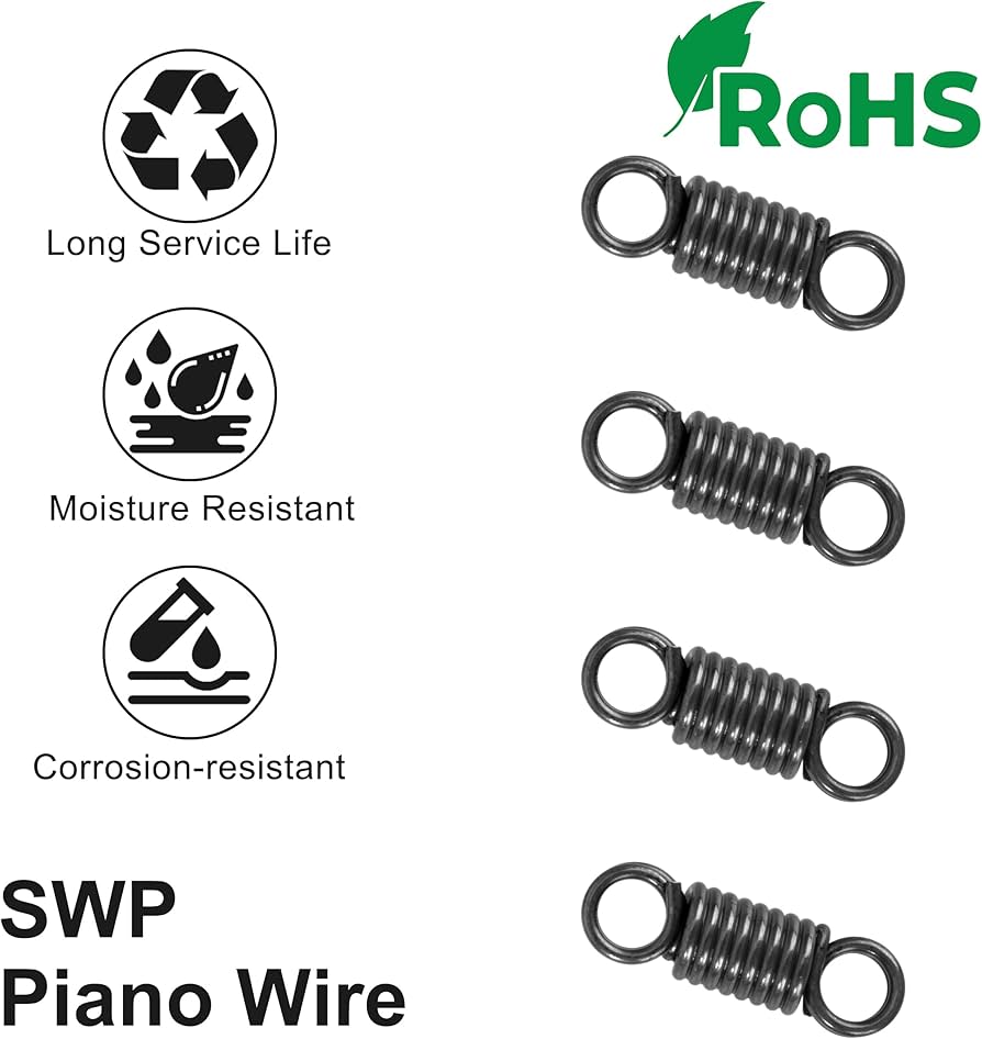 Hey Bastler und Handwerker! Diese GUNGY Zugfedern sind ja mal richtig professionell! Im Set sind 10 Stück mit Doppelhaken - perfekt für alle möglichen Spann- und Zuganwendungen! Aus hochwertigem Klavierdraht (SWP) - rostfrei, korrosionsbeständig und mit hoher Festigkeit! Die Maße sind genau: 1,2mm Drahtdurchmesser, 8mm Außendurchmesser, 50mm statische Länge! Die Haken haben einen 180-Grad-Winkel mit 2 Rundungen - lassen sich super mit Karabinern, Spanngurten oder Seilen verbinden! Maximale Zugkraft von 4,2kg (41,2N) bei 15,5mm Zuglänge - also schön kräftig! Die Oberfläche ist poliert - glatt und gratfrei, keine Verletzungsgefahr! Einsetzbar in so vielen Bereichen: Außenzelte, Trampoline, Spielzeug, Fitnessgeräte, Elektronik, Auto-Teile - der Phantasie sind keine Grenzen gesetzt! Besonders praktisch für Reparaturen, Modellbau oder DIY-Projekte! Die Qualität ist wirklich überzeugend - made in Japan und ROHS-zertifiziert! Also: Wenn du zuverlässige Zugfedern suchst - hier bist du goldrichtig!