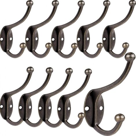 Stylische Vintage-Haken für mehr Ordnung! 8 Stück im Set - genug für den ganzen Flur. Aus hochwertiger Zinklegierung in schicker Bronze-Optik. Jeder Haken hat zwei Zinken - doppelt so viel Stauraum für Jacken, Handtücher, Taschen oder Schals. Maße: 65mm lang, 60mm hoch - kompakt aber stabil. Tragkraft bis 15 kg - da kannst du auch schwere Jacken aufhängen. Einfach zu montieren mit den beiliegenden Schrauben - einfach Loch bohren, Haken ansetzen, festschrauben und fertig! Perfekt für Bad, Küche, Flur, Schlafzimmer oder Kinderzimmer. Sieht aus wie antikes Messing - total im Trend! Mach deine Wände nicht nur praktischer, sondern auch schöner. Die Haken rosten nicht und verblassen nicht - halten ewig. Hol dir dieses stylische Set und bring Ordnung in dein Zuhause!