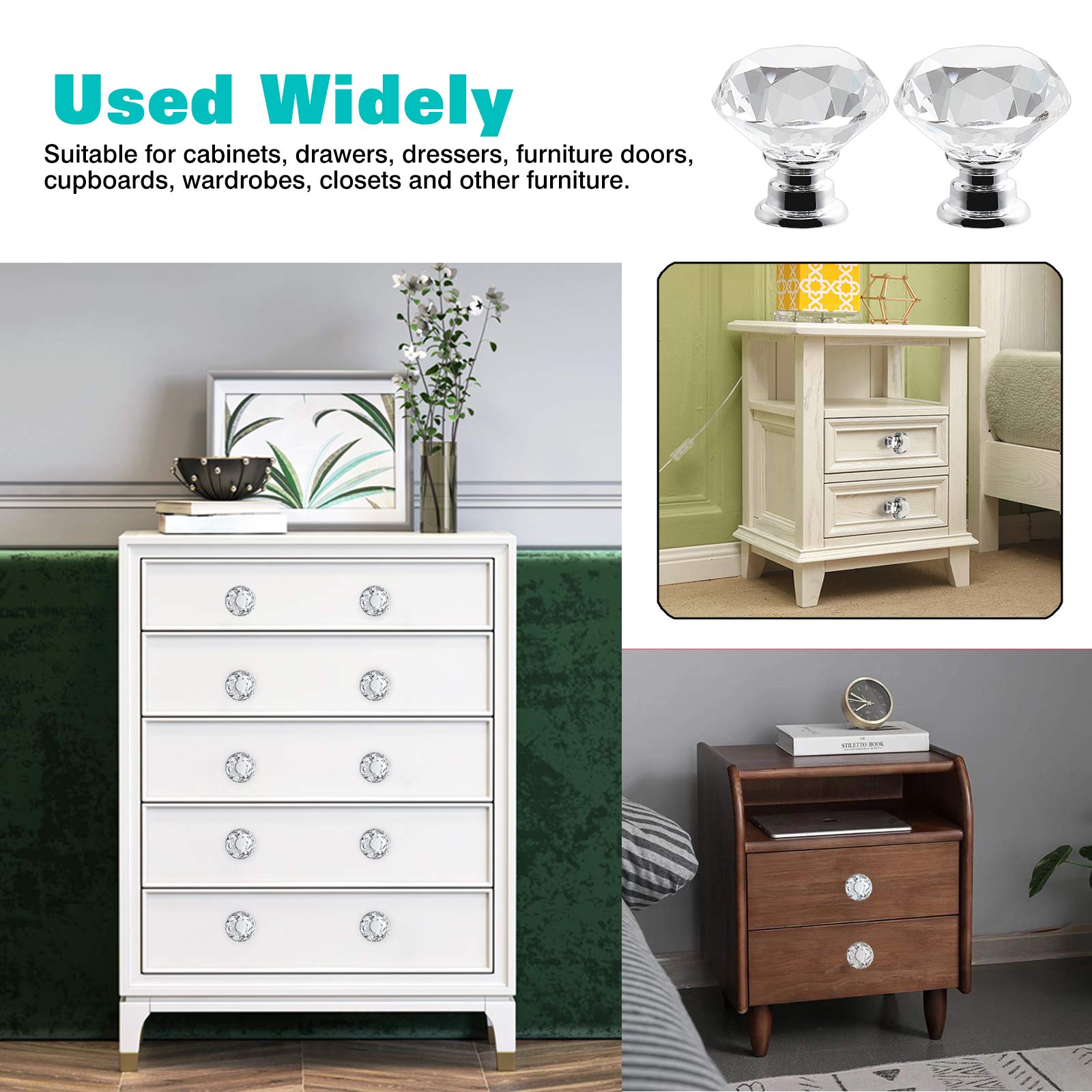 Verpasse deinen Möbeln einen glamourösen Update mit diesen 6 transparenten Kristall-Griffen von ETHZZLE! Jeder Knauf ist ca. 4x3x3 cm groß und besteht aus hochwertiger Legierung mit Kristallglas-Einsätzen. Das klare Design funkelt dezent und verleiht Schränken, Kommoden und Schubladen sofort ein edleres Aussehen. Die Oberfläche ist glatt und angenehm in der Hand, die Grate sind präzise verarbeitet. Einfach zu montieren - in wenigen Minuten verwandelst du langweilige Möbel in Hingucker. Perfekt für Küchenschränke, Badezimmermöbel, Kleiderschränke oder Sideboards. Das Kristall-Design reflektiert das Licht wunderschön und bringt einen Hauch von Luxus in dein Zuhause. 6 Stück im Set - genug für mehrere Möbelstücke. Modern, elegant und zeitlos - diese Griffe machen einfach alles schöner!