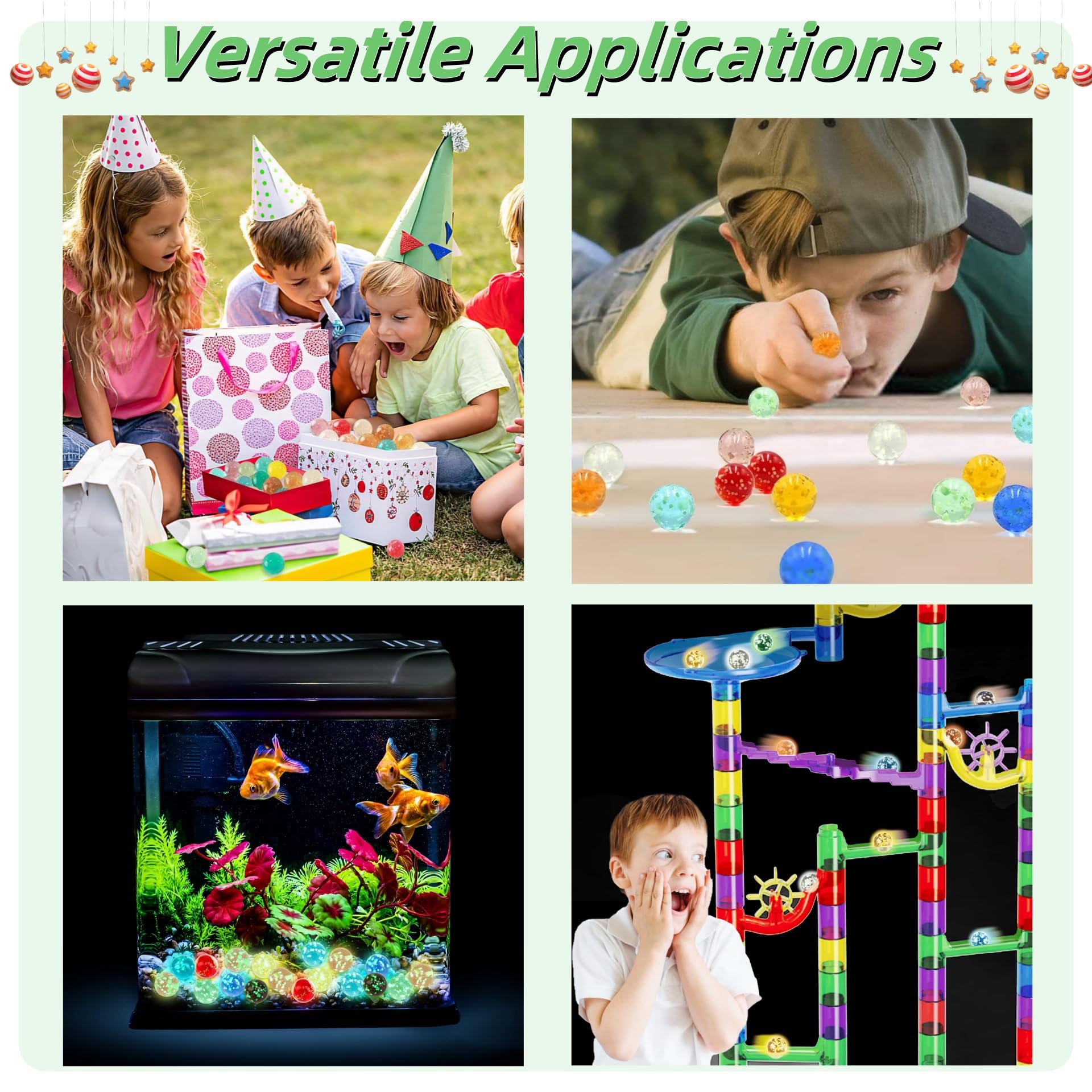 Einfach dem Licht aussetzen und schon leuchten sie nachts von alleine - keine Batterien needed! Perfekt für Murmelspiele, als Vasenfüller oder für kreative DIY-Projekte.