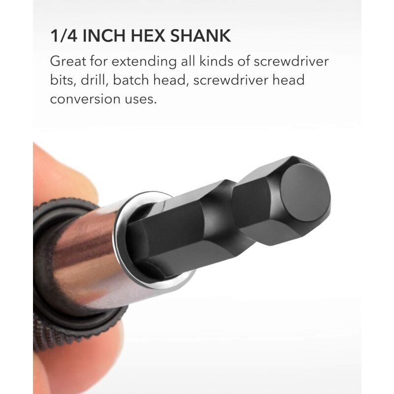 Wechseln war noch nie so einfach! Diese 6 magnetischen Bithalter machen das Arbeiten mit Bohrmaschine und Schraubendreher zum Kinderspiel. Mit 1/4 Zoll Sechskantschaft (6,35mm) passen sie in die meisten handelsüblichen Geräte. Jeder Bithalter ist 60mm lang und hat einen eingebauten Magneten am Boden des Aufnahmelochs - so halten die Bits sicher, ohne herauszufallen. Einfach auf die Hülse drücken, schon wird der Sechskantkopf freigegeben und du kannst das Bit wechseln. Aus hochwertigem Material mit glatter Oberfläche und hoher Temperaturbeständigkeit. Perfekt für Schlagschrauber, elektrische Schraubendreher, manuelle Schraubendreher und pneumatische Bohrmaschinen. Spart Zeit und Nerven bei langen Arbeitsphasen. Achtung: Nur der Boden des Lochteils ist magnetisch, der Hexenschaft nicht. Nicht für Eisenprodukte verwenden und Schutzmaßnahmen ergreifen!