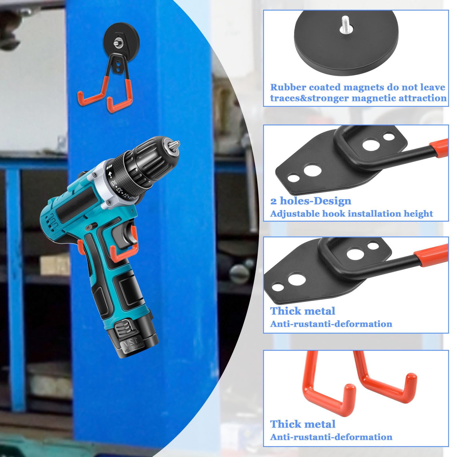 Riesige Magnetkraft! Diese LOMUG Magnethaken halten bis zu 10 kg - wow! Mit Doppelhaken-Design - doppelt praktisch. Durchmesser 66 mm, Höhe 125 mm - gut sichtbar in Orange. Aus Neodym-Magnet mit 3-fach Beschichtung (Ni+Cu+Ni) - super langlebig. Kein Bohren nötig - einfach an Metallflächen anbringen. Mit gummierten Stellen - schont die Oberfläche. Perfekt für Garage, Werkstatt, Küche, Garten oder Schuppen. Hält Werkzeuge, Schläuche, Besen, Sporttaschen sicher. Einfach zu verwenden - sofort einsatzbereit. Packung mit 2 Stück - mehr als genug. Spart Platz und bringt Ordnung. Ein echter Game-Changer für jede Werkstatt! Einfach magnetisieren und aufhängen - fertig!