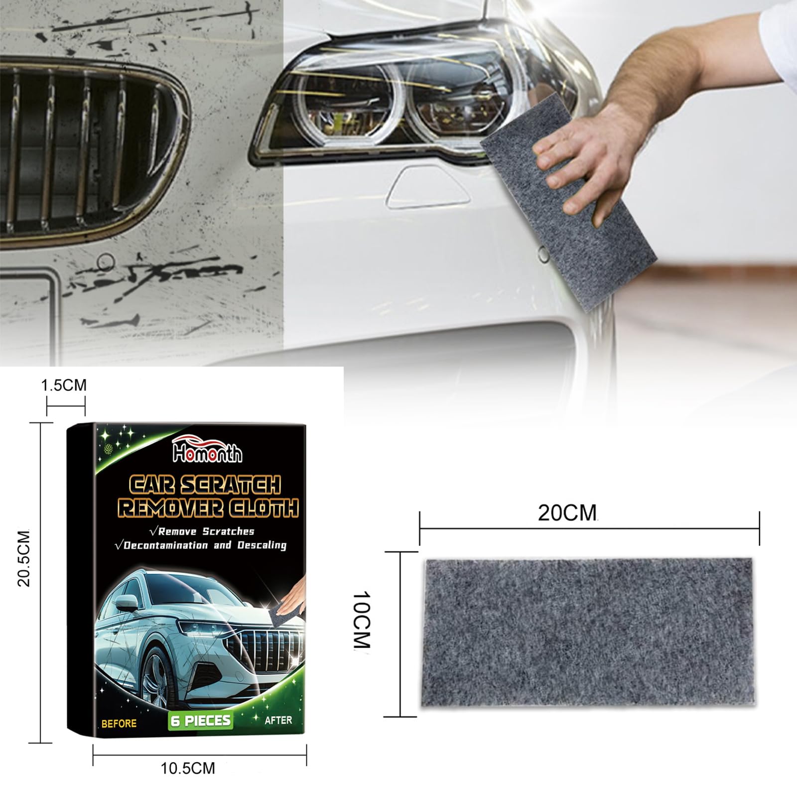 Weg mit den lästigen Kratzern! Diese 12 Nano Sparkle Tücher entfernen oberflächliche Kratzer, Swirls und Wasserflecken wie von Zauberhand. Mit fortschrittlicher Nanotechnologie polierst du deinen Lack einfach per Hand - ohne Maschinen oder Werkzeuge. Jedes Tuch misst 20x10cm und ist aus hochwertiger Mikrofaser mit integrierten Poliermineralien. Für alle Lackfarben und Fahrzeugtypen geeignet, auch für Motorräder, Boote oder Haushaltsoberflächen. Einfach auf sauberer Fläche in kreisenden Bewegungen polieren und der ursprüngliche Glanz kehrt zurück. Wiederverwendbar bei richtiger Lagerung - das perfekte Set für Auto-Fans, die ihren Lack immer in Top-Zustand halten wollen!