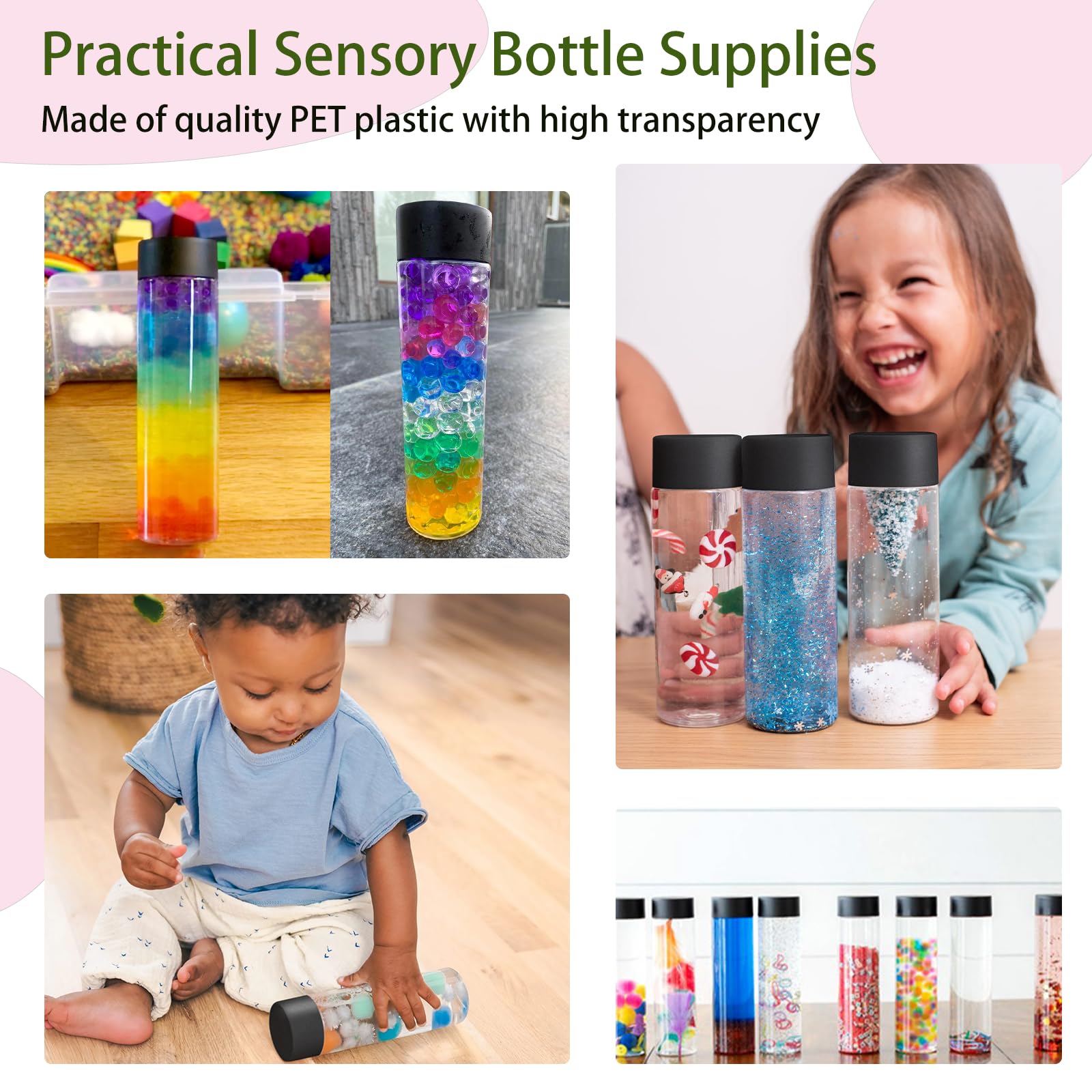 Suchst du praktische Flaschen für deine DIY-Projekte oder die nächste Party? Dieses Set mit 24 klaren PET-Flaschen ist genau das Richtige! Jede Flasche fasst 350 ml und hat nen sicheren Schraubdeckel – auslaufsicher und perfekt für Smoothies, selbstgemachte Getränke oder sensorisches Spielzeug. Aus lebensmittelechtem Kunststoff sind sie robust, leicht und wiederverwendbar. Super für Kindergarten, Schule oder zu Hause – fördert die Feinmotorik und Kreativität. Die durchsichtigen Flaschen lassen sich gut befüllen und sehen auch noch dekorativ aus. Einfach handwaschen und immer wieder verwenden. Ob für Kindergeburtstage, Feiern oder als Vorratsbehälter – mit diesen Flaschen bist du bestens ausgestattet!