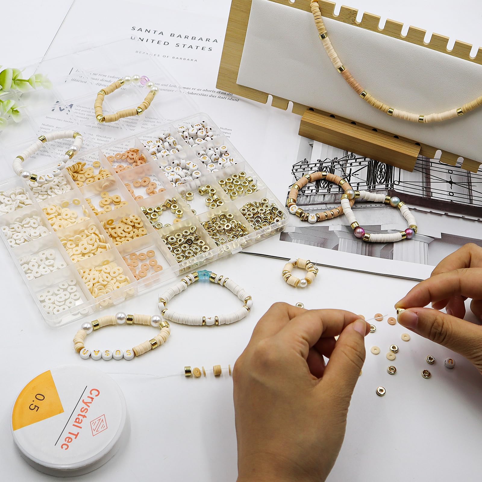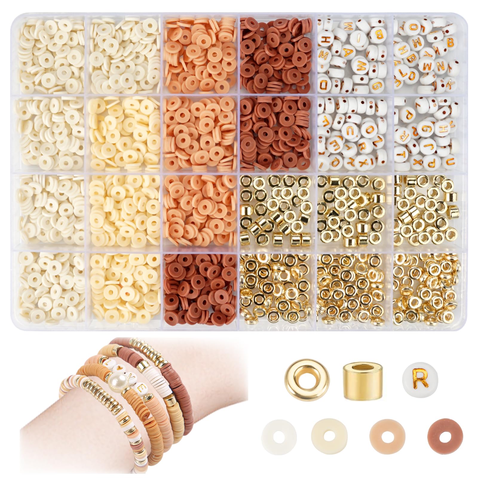 Im Set findest du weiße Perlen in verschiedenen Tönen, goldfarbene Zwischenperlen und das absolute Highlight: A-Z Buchstaben-Perlen! So kannst du Namen, Botschaften oder Initialen in deine Kreationen einarbeiten.
